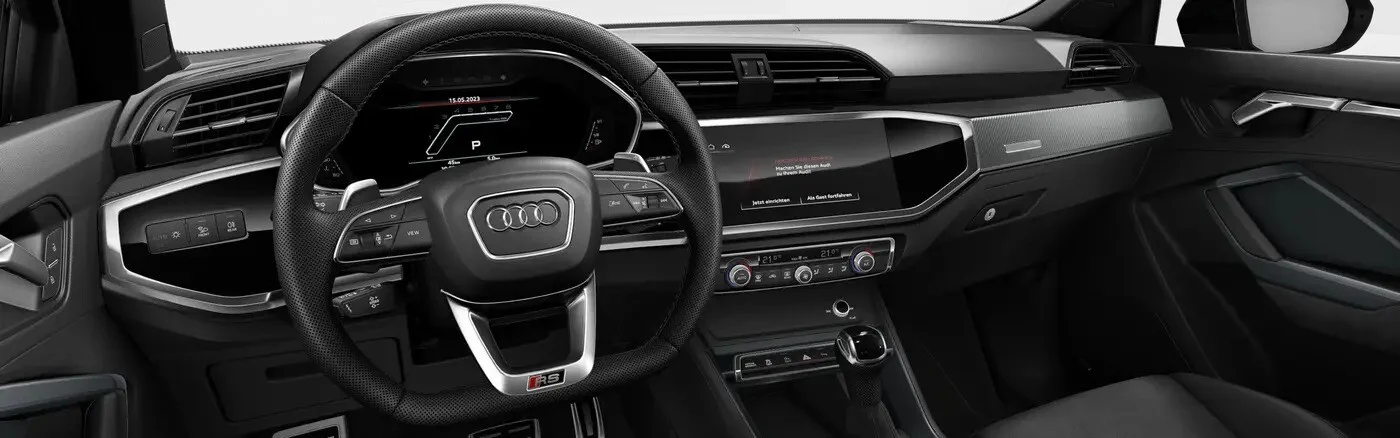 Wnętrze Audi RS Q3 zachwyca zaawansowanym systemem multimedialnym, który umożliwia łatwe sterowanie różnymi funkcjami pojazdu. Duży dotykowy ekran pozwala na intuicyjne korzystanie z nawigacji, odtwarzania multimediów oraz łączności Bluetooth. Ponadto, wysokiej jakości system audio dostarcza doskonałe wrażenia dźwiękowe.