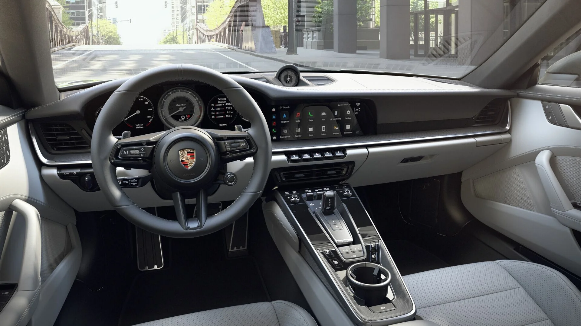 Wnętrze Porsche 911 Turbo jest zaprojektowane z myślą o komforcie i sportowym luksusie. Kierowca i pasażerowie mogą cieszyć się wysokiej jakości materiałami wykończeniowymi i precyzyjnym wykonaniem.