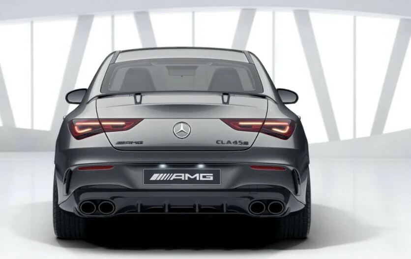 Z zewnątrz Mercedes-Benz AMG CLA 45 S prezentuje się agresywnie i muskularnie. Charakteryzuje go aerodynamiczny design z muskularnymi nadkolami, wyraźnie zarysowanymi liniami i charakterystyczną atrapą chłodnicy z logo AMG. Swoim wyglądem nawiązuje do sportowych korzeni marki.