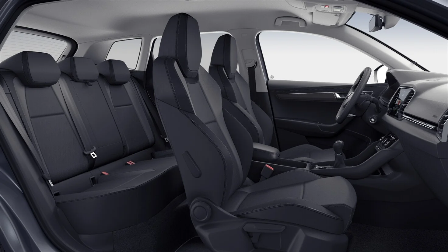 Wnętrze Karoqa jest przestronne, oferując wygodne miejsce dla pięciu pasażerów. Zastosowane materiały są wysokiej jakości, a wykończenie jest starannie wykonane. Kierowca ma do dyspozycji ergonomicznie zaprojektowany kokpit z intuicyjnie rozmieszczonymi przyciskami i wyświetlaczem dotykowym do sterowania systemem multimedialnym.