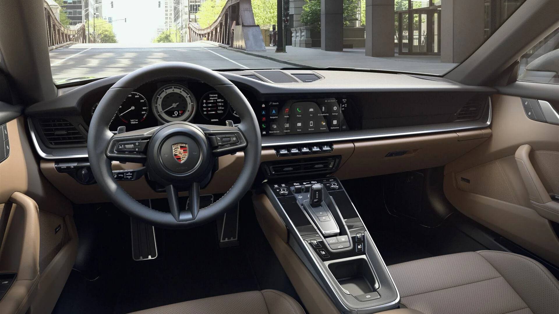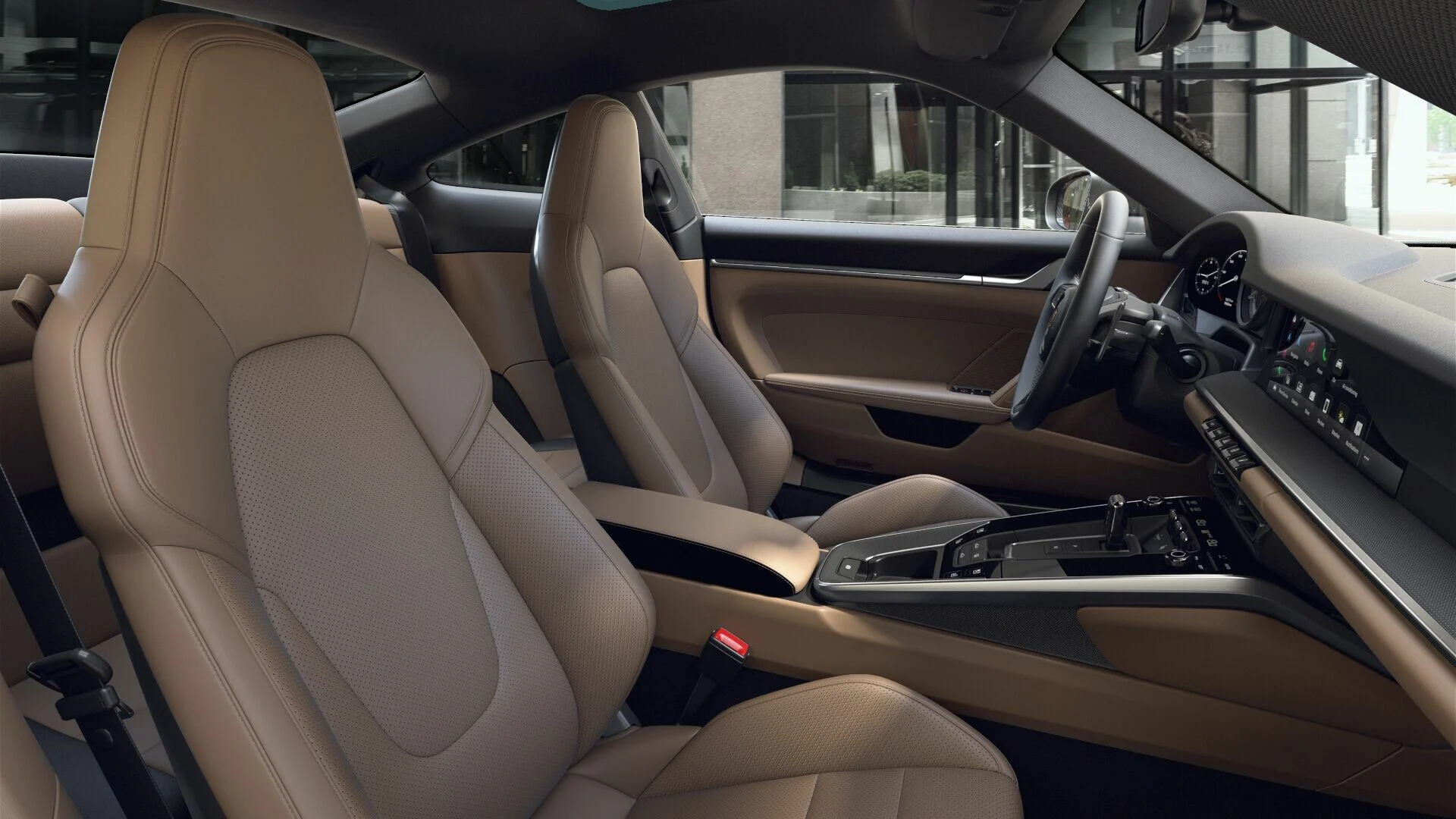 Wnętrze Porsche oferuje luksus i sportowy charakter w doskonałej harmonii. Kierowca i pasażerowie cieszą się wygodnymi sportowymi fotelami, wysokiej jakości materiałami wykończeniowymi i zaawansowanym systemem multimedialnym. Wszystkie elementy są starannie wykonane, zapewniając wysoki poziom komfortu i przyjemności z jazdy.