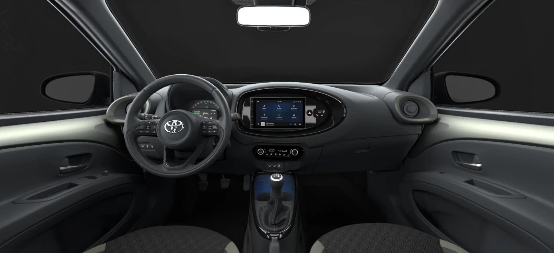 Wnętrze Toyota AygoX zostało zaprojektowane z myślą o funkcjonalności i komforcie. Mimo kompaktowych rozmiarów, kabina jest przestronna i oferuje wygodne miejsce zarówno dla kierowcy, jak i pasażerów. Ergonomicznie zaprojektowane fotele zapewniają wygodę nawet podczas dłuższych podróży. Kokpit jest intuicyjny i przejrzysty, umożliwiając łatwą obsługę wszystkich funkcji i systemów.