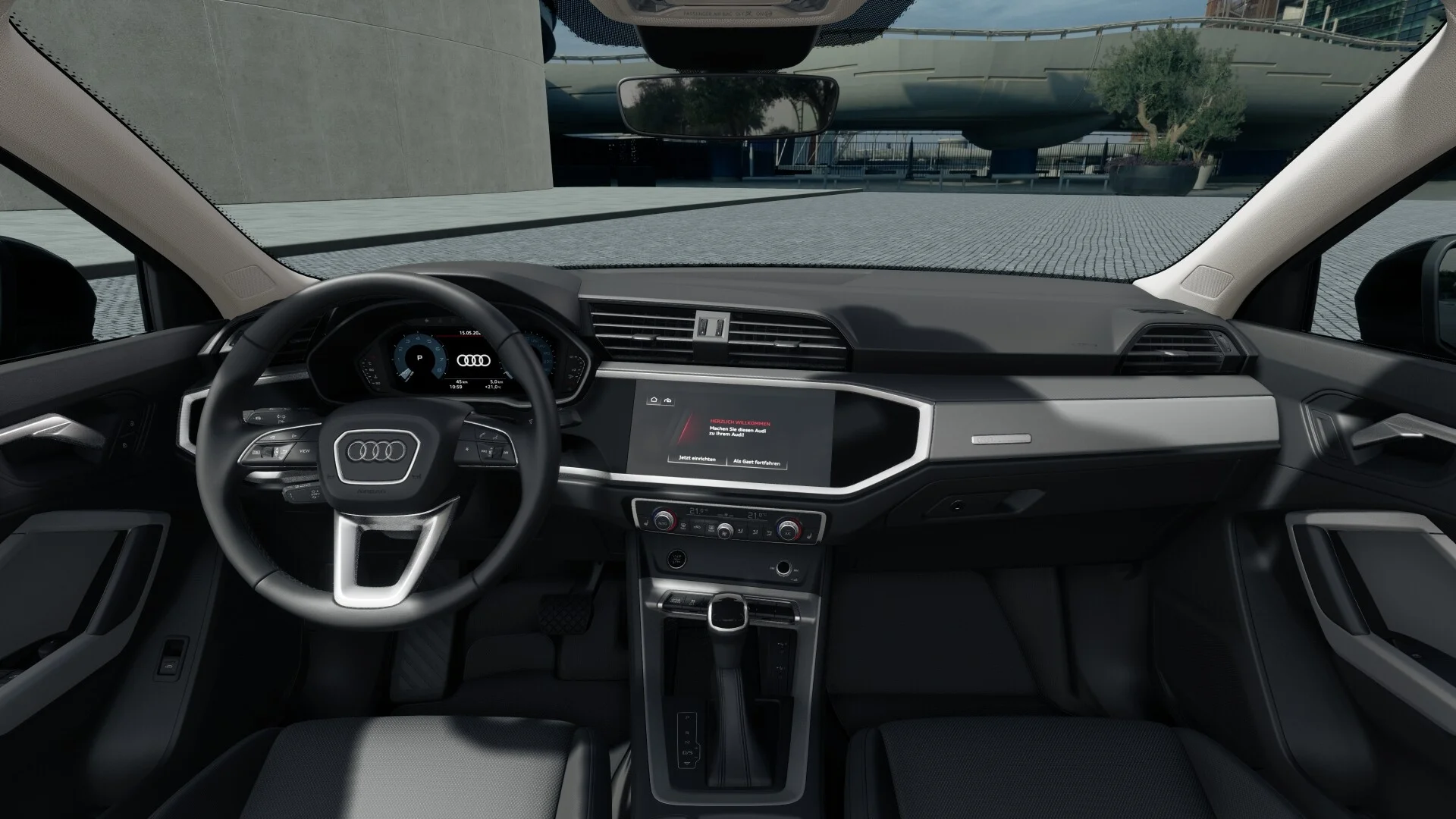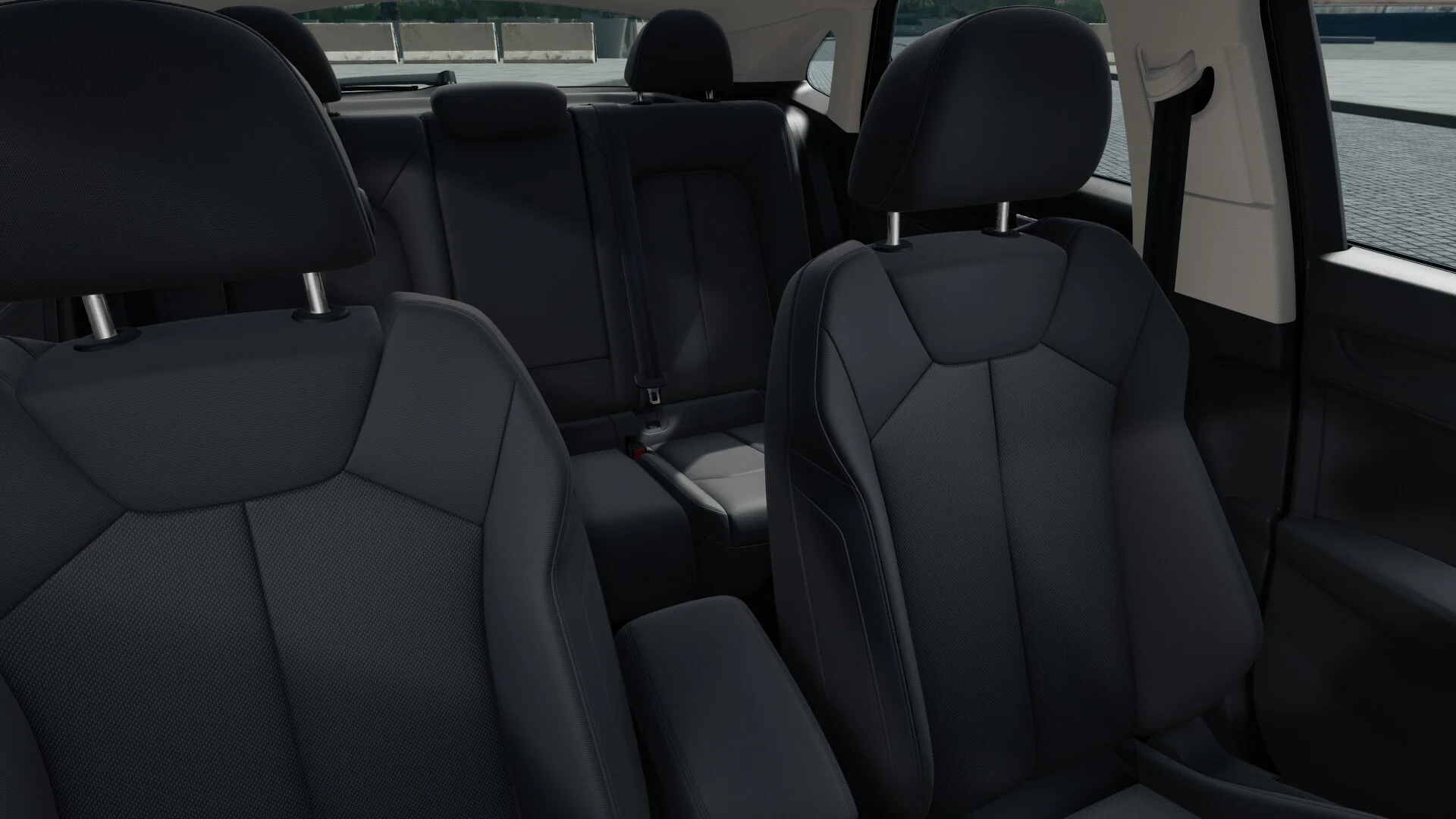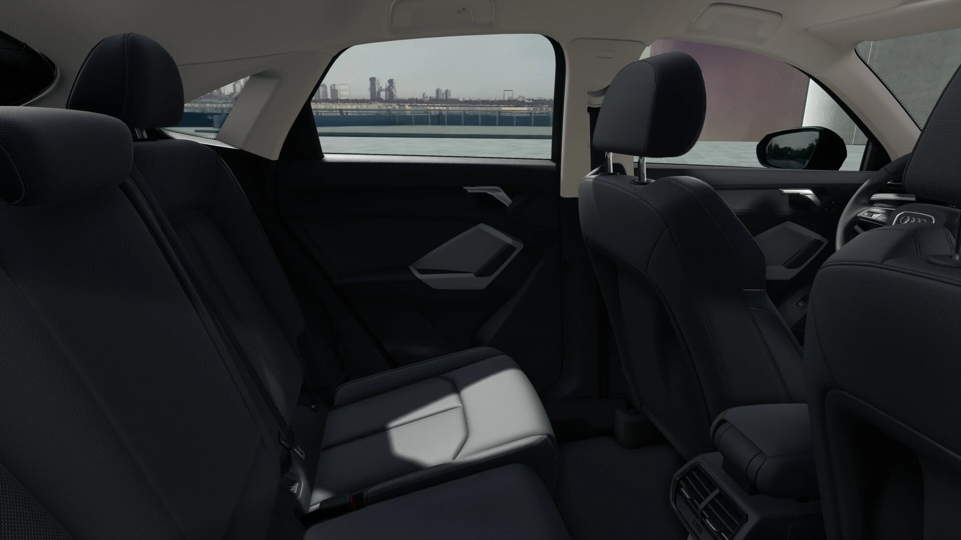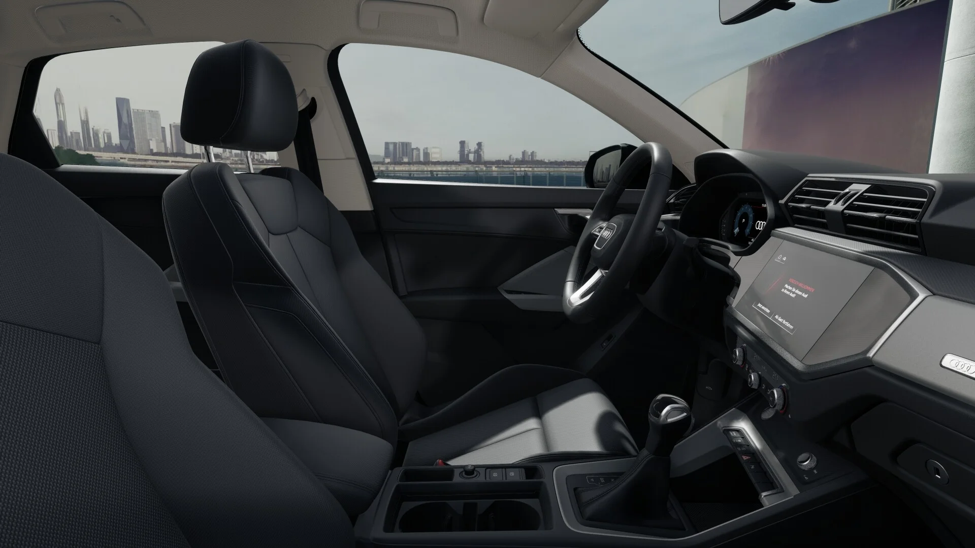 Wnętrze Q3 Sportback S line 35 TFSI oferuje komfortową i nowoczesną przestrzeń dla kierowcy i pasażerów. Zastosowanie wysokiej jakości materiałów oraz staranne wykończenie wnętrza podkreślają jego prestiżowy charakter. Sportowe fotele, obszyte skórą z charakterystycznym wzorem, zapewniają doskonałe trzymanie boczne i wygodę podczas jazdy.