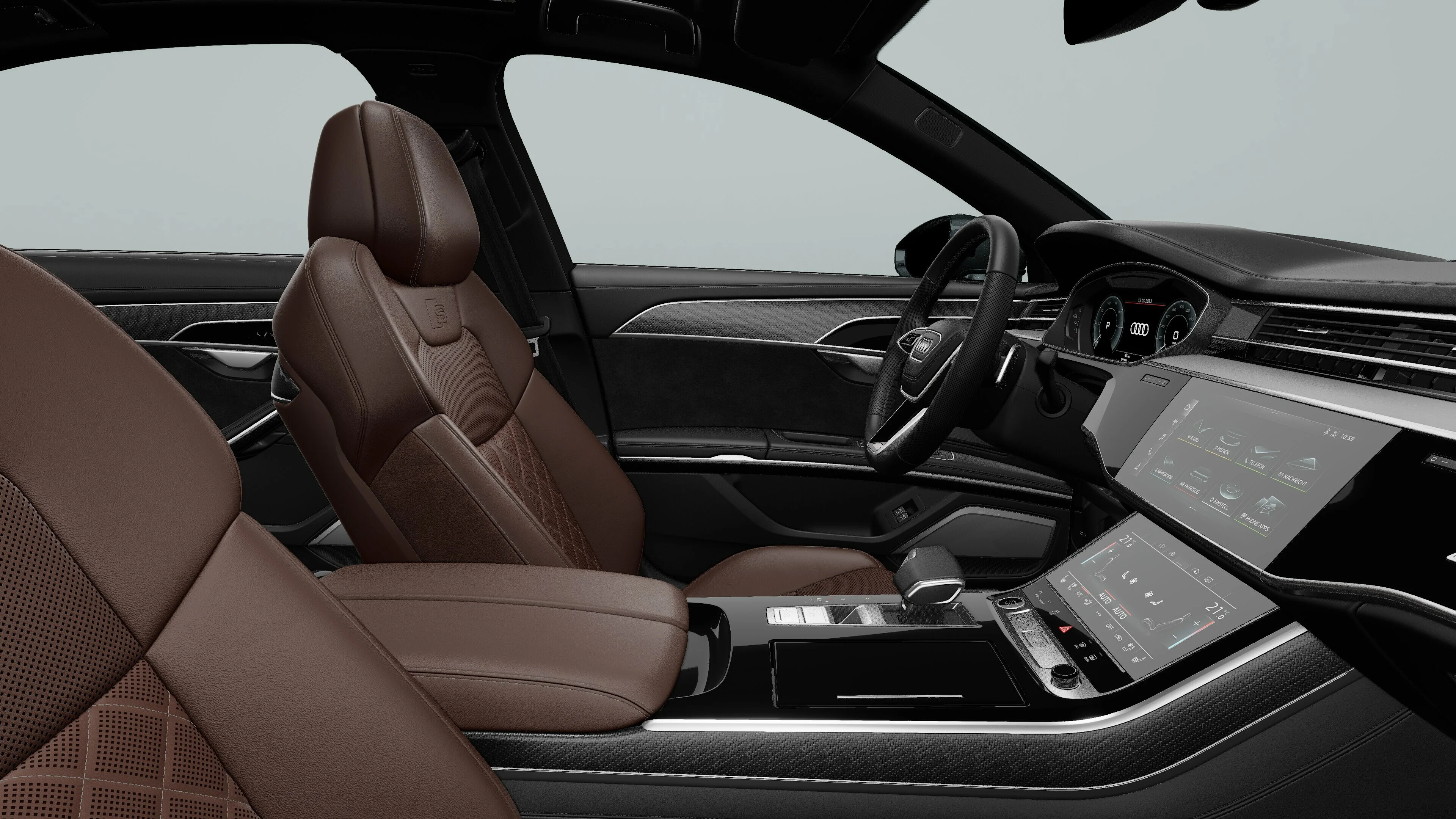 Wnętrze Audi zachwyca swoją luksusową elegancją i najwyższą jakością wykonania. Kabina została zaprojektowana z dbałością o detale, oferując nie tylko wygodne fotele, ale także mnóstwo przestrzeni, aby podróżowanie było przyjemnością zarówno dla kierowcy, jak i pasażerów.
