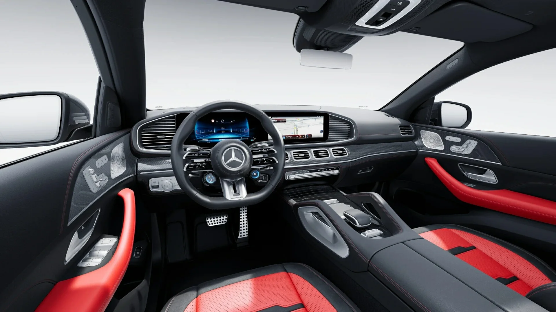 Wnętrze Mercedes-Benz GLE 53 AMG Coupe jest pełne luksusu i najnowocześniejszych rozwiązań technologicznych. Przestronna kabina zapewnia komfortową podróż dla pięciu pasażerów. Materiały najwyższej jakości, precyzyjne wykończenia, a także wygodne i regulowane fotele podkreślają wysoki standard wykończenia.