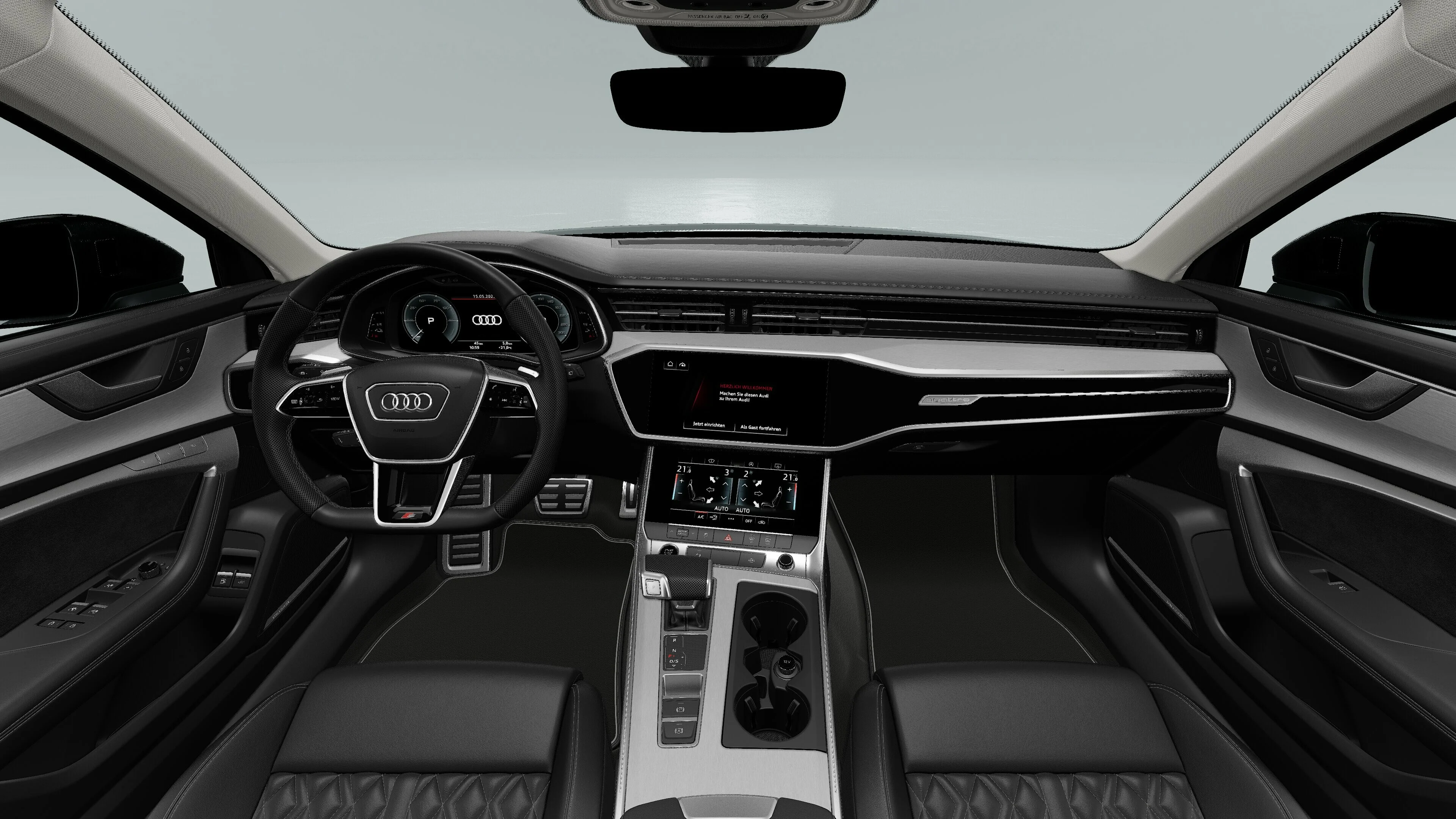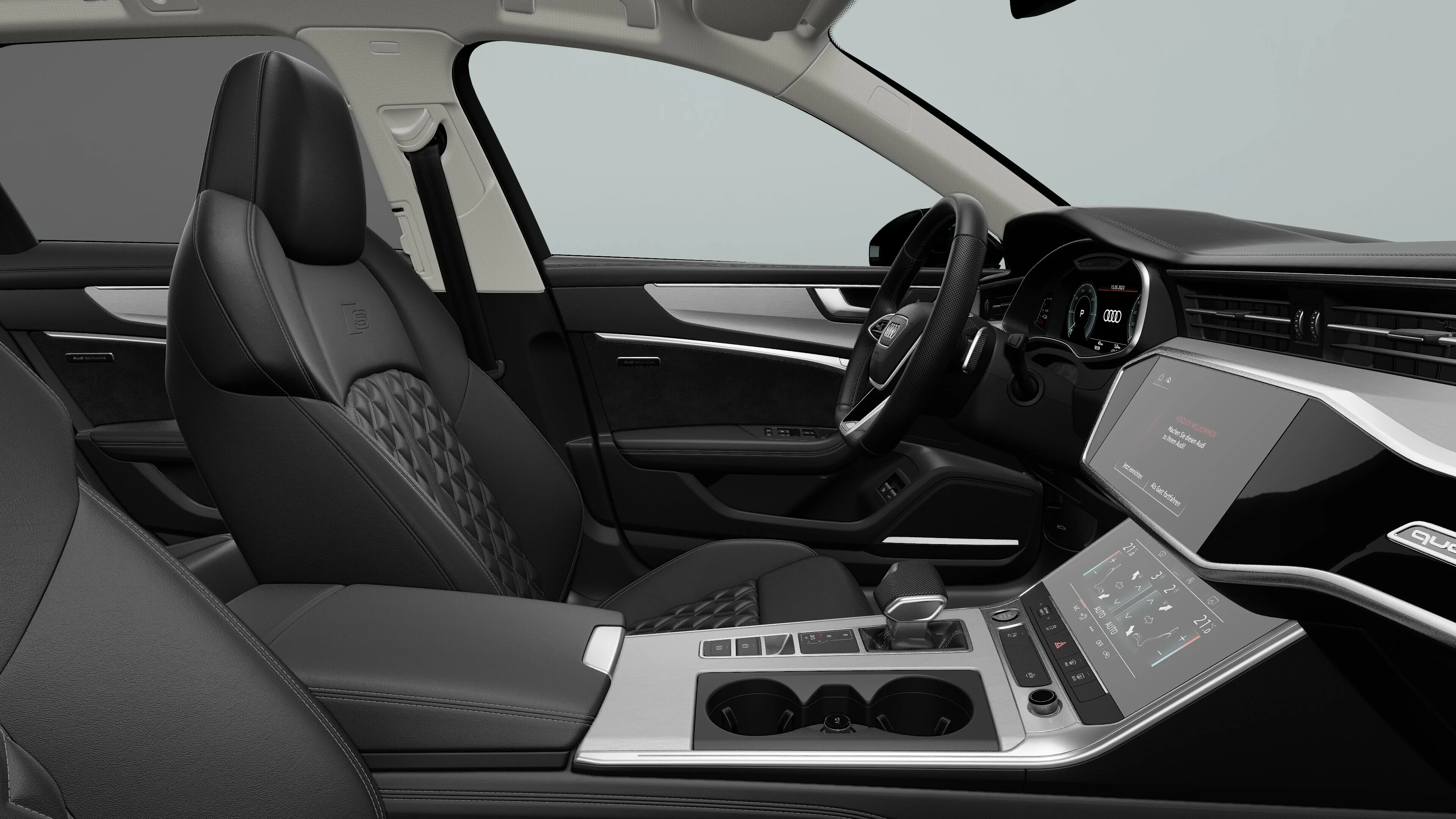 Wnętrze pojazdu emanuje luksusem i technologią. Kierowca ma dostęp do zaawansowanego systemu multimedialnego MMI, który integruje nawigację, system audio oraz wiele innych funkcji. Przyjazny interfejs użytkownika zapewnia intuicyjną obsługę. Dodatkowo, wygodne fotele, wysokiej jakości materiały wykończeniowe oraz nowoczesne akcenty tworzą atmosferę komfortu i elegancji.