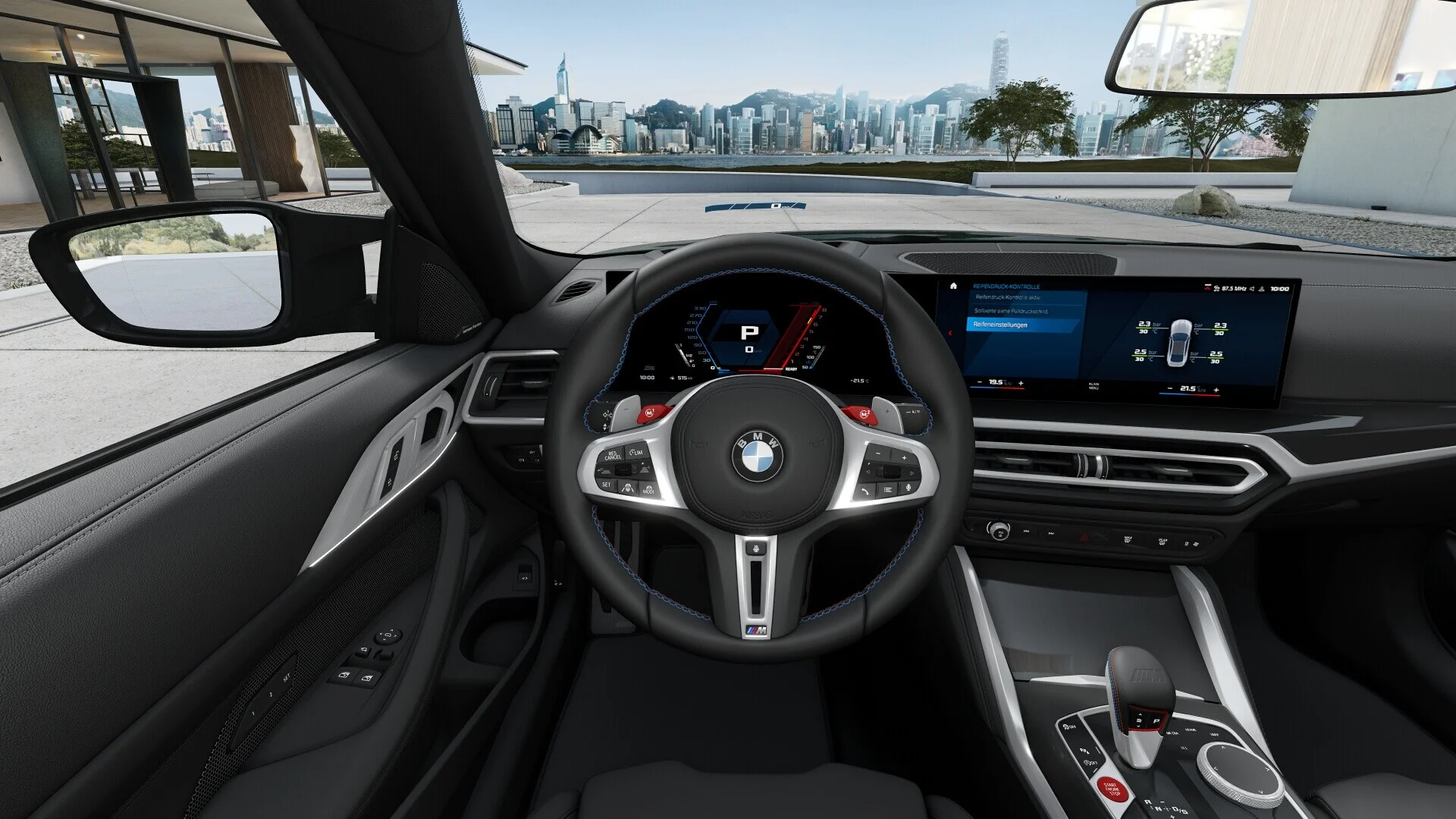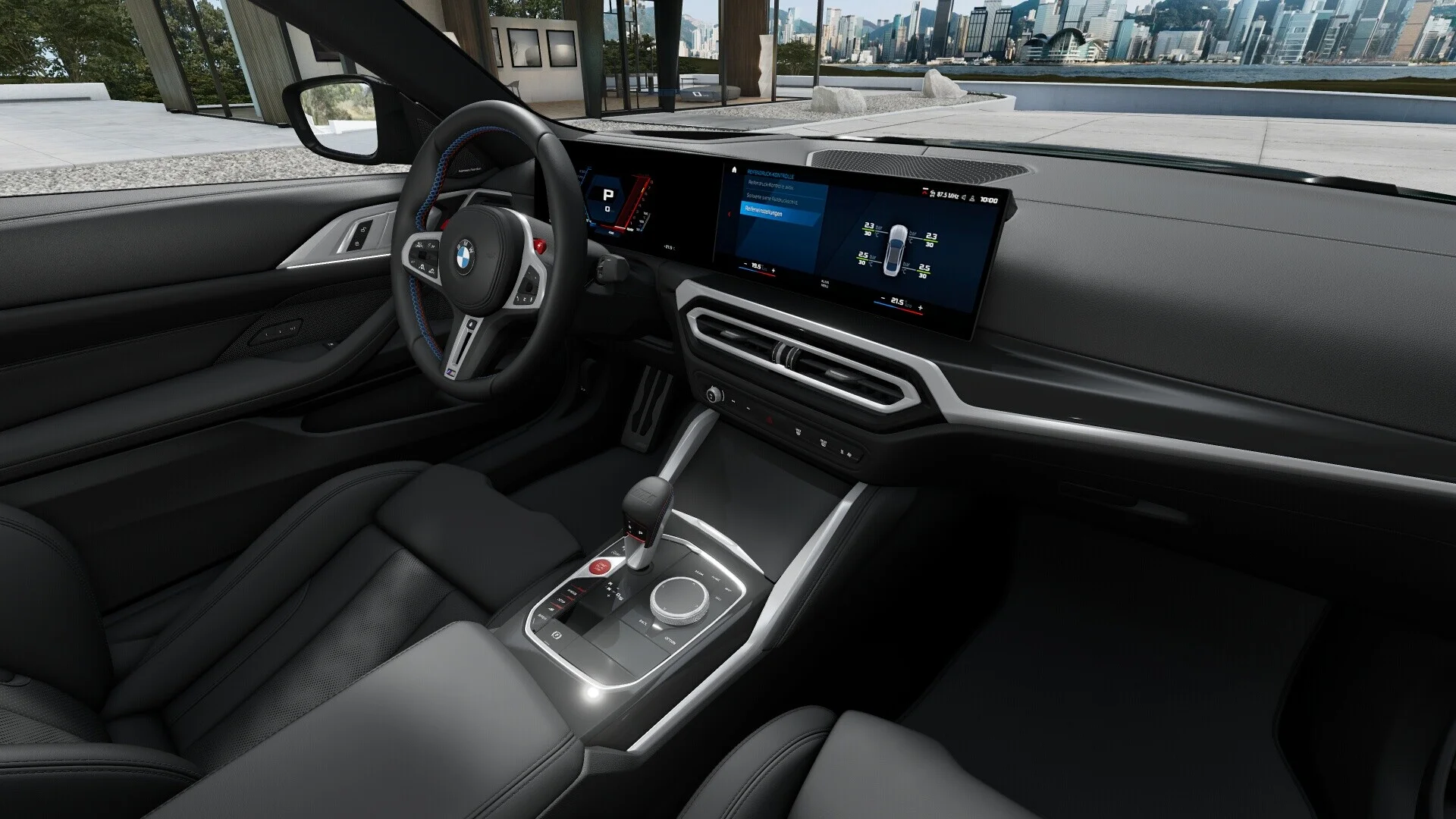 Wnętrze BMW M4 Competition cechuje się sportowym charakterem, ale również wysoką jakością wykończenia. Sportowe fotele, kierownica z osprzętem dostosowanym do szybkiej jazdy oraz unikalne detale wykończenia, takie jak kontrastowe przeszycia czy karbonowe elementy, podkreślają ducha sportowo-luksusowego charakteru samochodu. Technologia i rozrywka również nie zostają w tyle, oferując zaawansowany system multimedialny, nawigację oraz wiele opcji personalizacji.