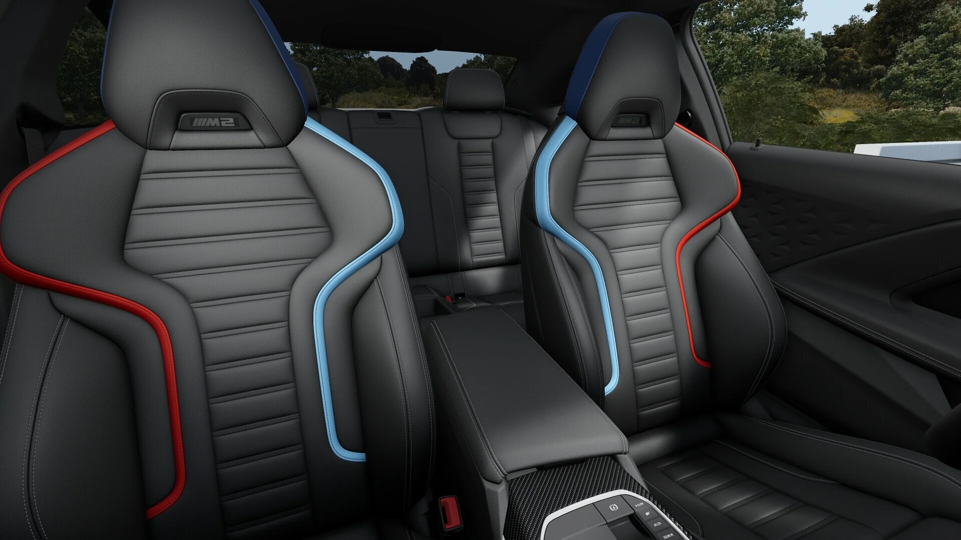 Wnętrze BMW M2 jest równie imponujące jak jego wygląd zewnętrzny. Kabina jest przestronna i dobrze zaprojektowana, zapewniając kierowcy i pasażerom komfort i luksus. Sportowe fotele, tapicerka z wysokiej jakości materiałów oraz zaawansowany system multimedialny to tylko niektóre z elementów wyposażenia wnętrza.