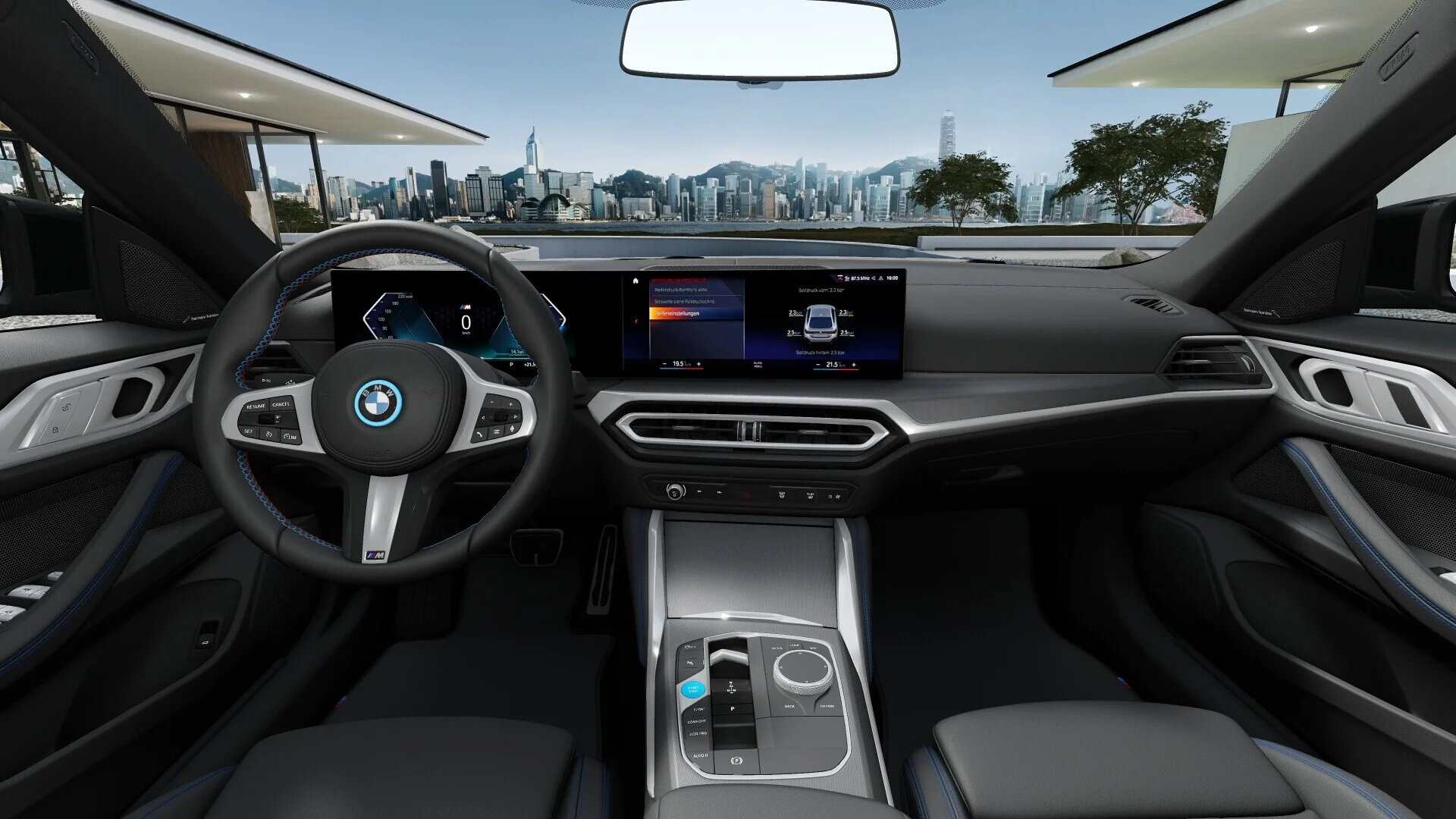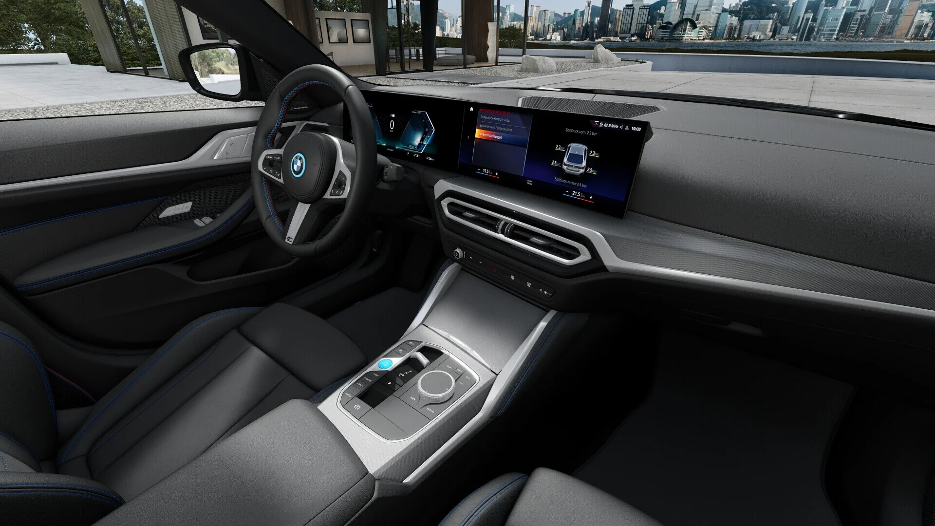 Wnętrze: Kabina BMW i4 oferuje przestronne wnętrze z luksusowymi wykończeniami i wysokiej jakości materiałami. Wnętrze jest nowoczesne, z wykorzystaniem zaawansowanych technologii, takich jak cyfrowy kokpit i duży ekran dotykowy, który kontroluje system infotainment. Fotele są wygodne i zapewniają doskonałe wsparcie zarówno dla kierowcy, jak i pasażerów.
