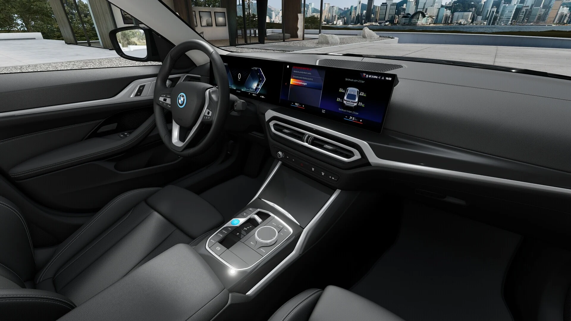 Z zewnątrz BMW i4 eDrive40 Grand Coupe prezentuje się dynamicznie i elegancko. Smukła sylwetka, charakterystyczne podwójne nerkowate grille, precyzyjnie ukształtowane reflektory LED i aerodynamiczne linie nadwozia nadają mu nowoczesny i sportowy wygląd. 20-calowe aluminiowe felgi dodają autu pewności na drodze, podkreślając jednocześnie jego styl.