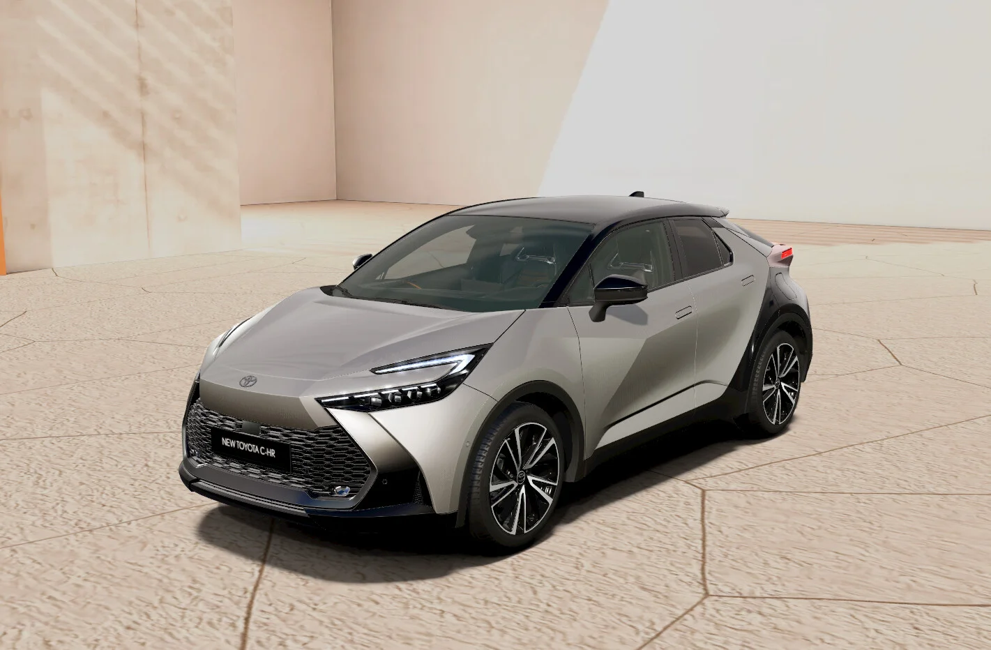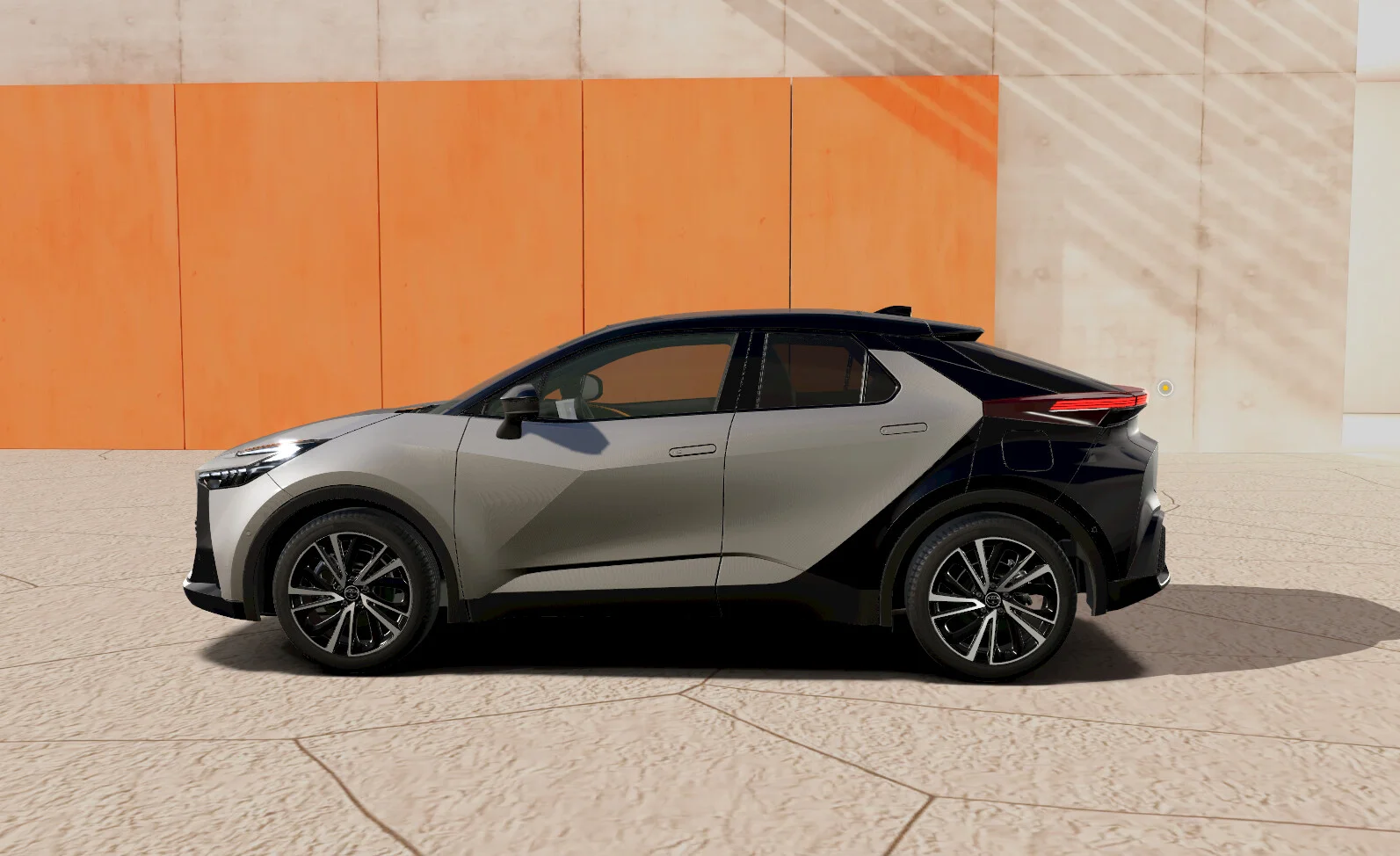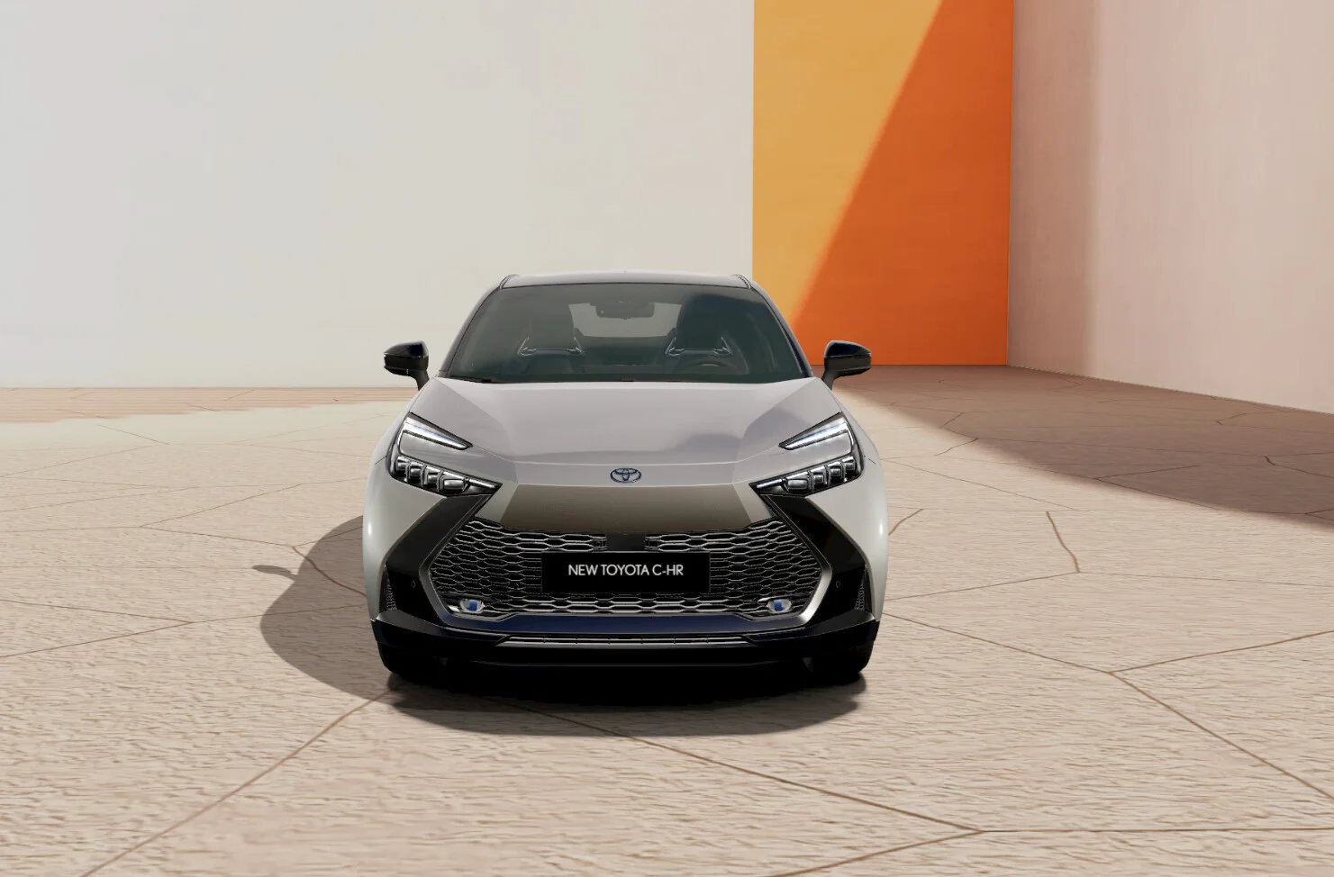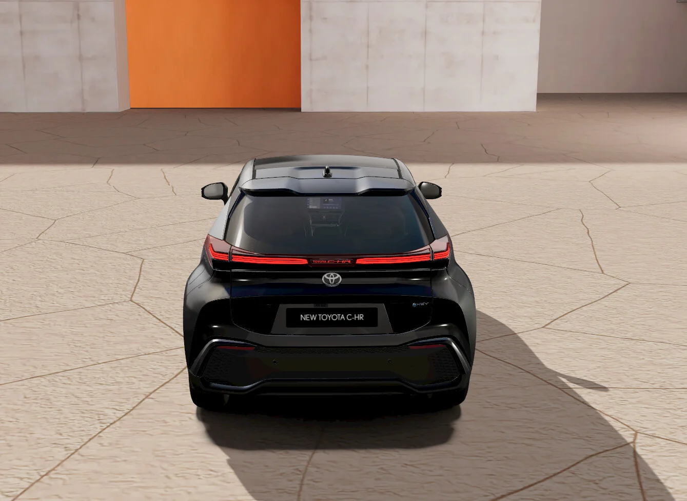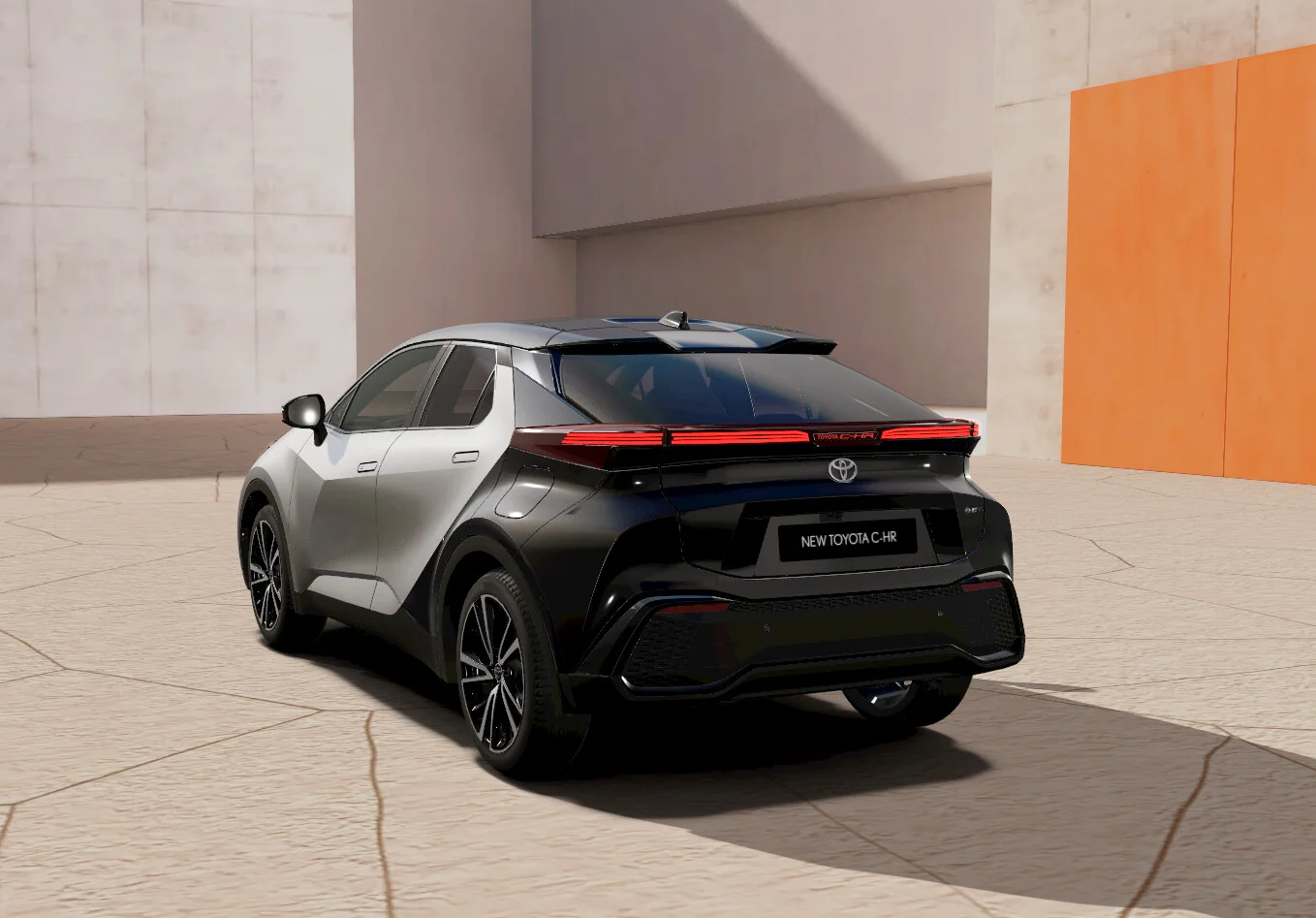 Z przodu Toyota C-HR prezentuje agresywny design, podkreślony smukłymi reflektorami LED i charakterystyczną atrapą chłodnicy. Linie boczne nadają pojazdowi dynamiczny wygląd, a unikalne detale, takie jak schodzący dach, dodają mu nowoczesnego charakteru. Charakterystyczne tylne lampy LED i podwójne końcówki układu wydechowego podkreślają sportowy styl tego crossovera.