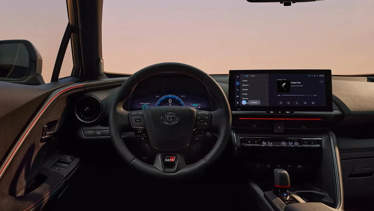 Wnętrze Toyota C-HR oferuje ergonomiczny i nowoczesny design, z wysokiej jakości materiałami i starannym wykonaniem. Przemyślane rozmieszczenie elementów sprawia, że kierowca ma łatwy dostęp do wszystkich funkcji. Obszerne okna zapewniają dobrą widoczność, a panoramiczny dach sprawia, że wnętrze jest jasne i przestronne.