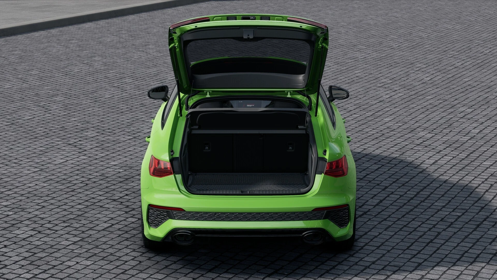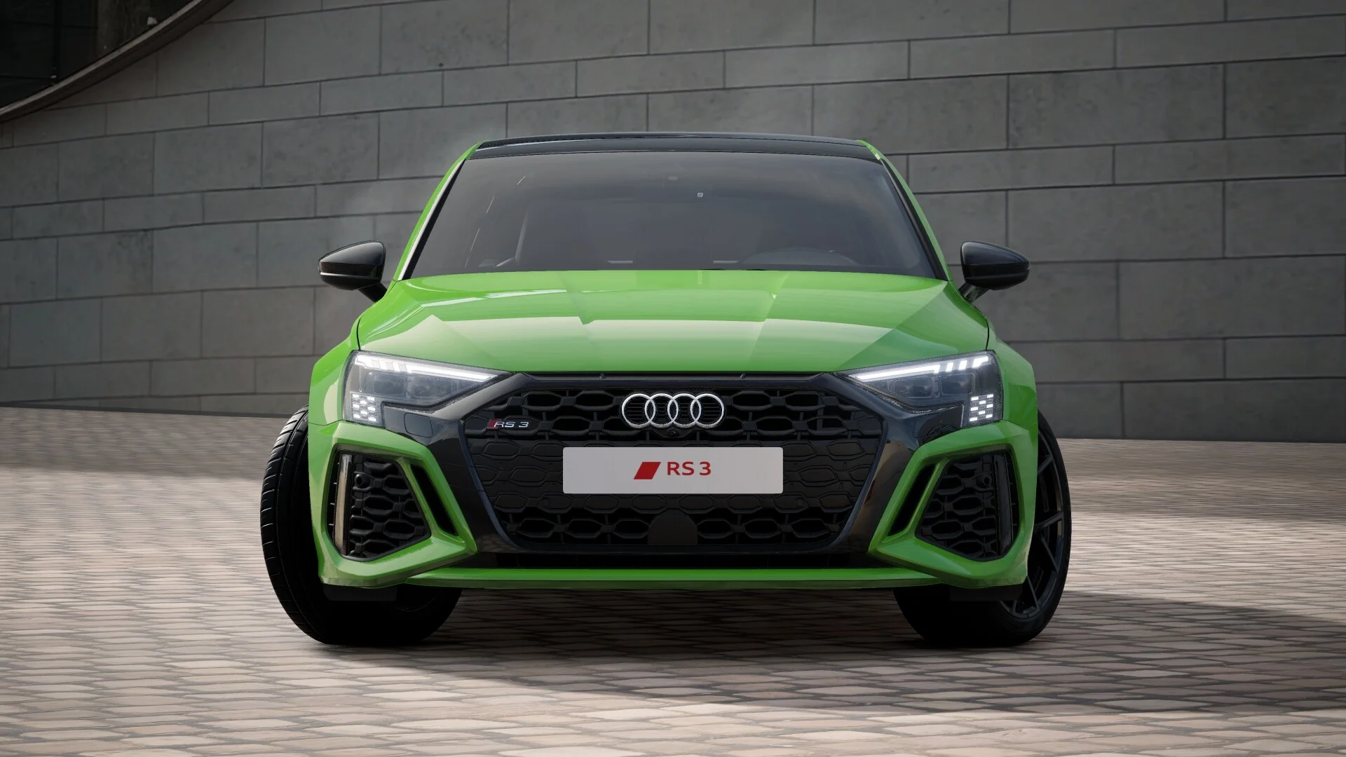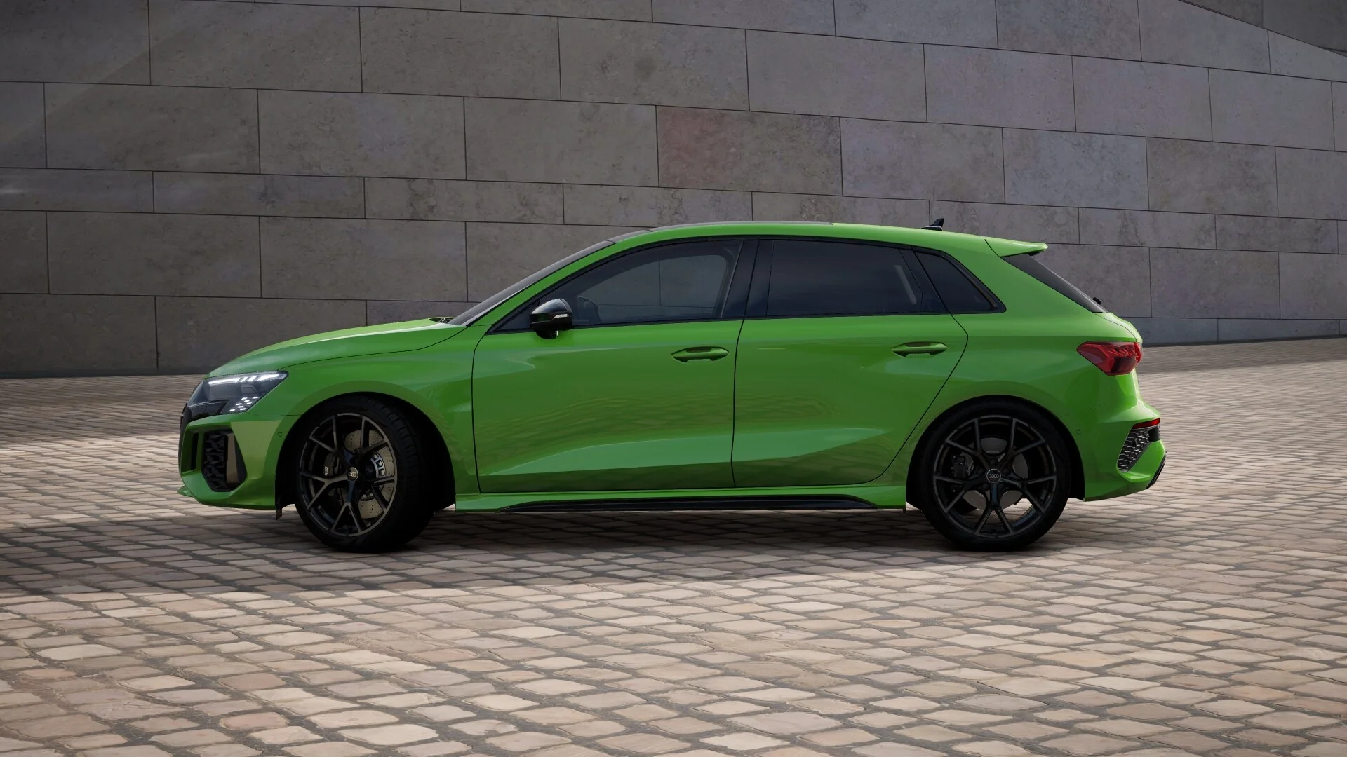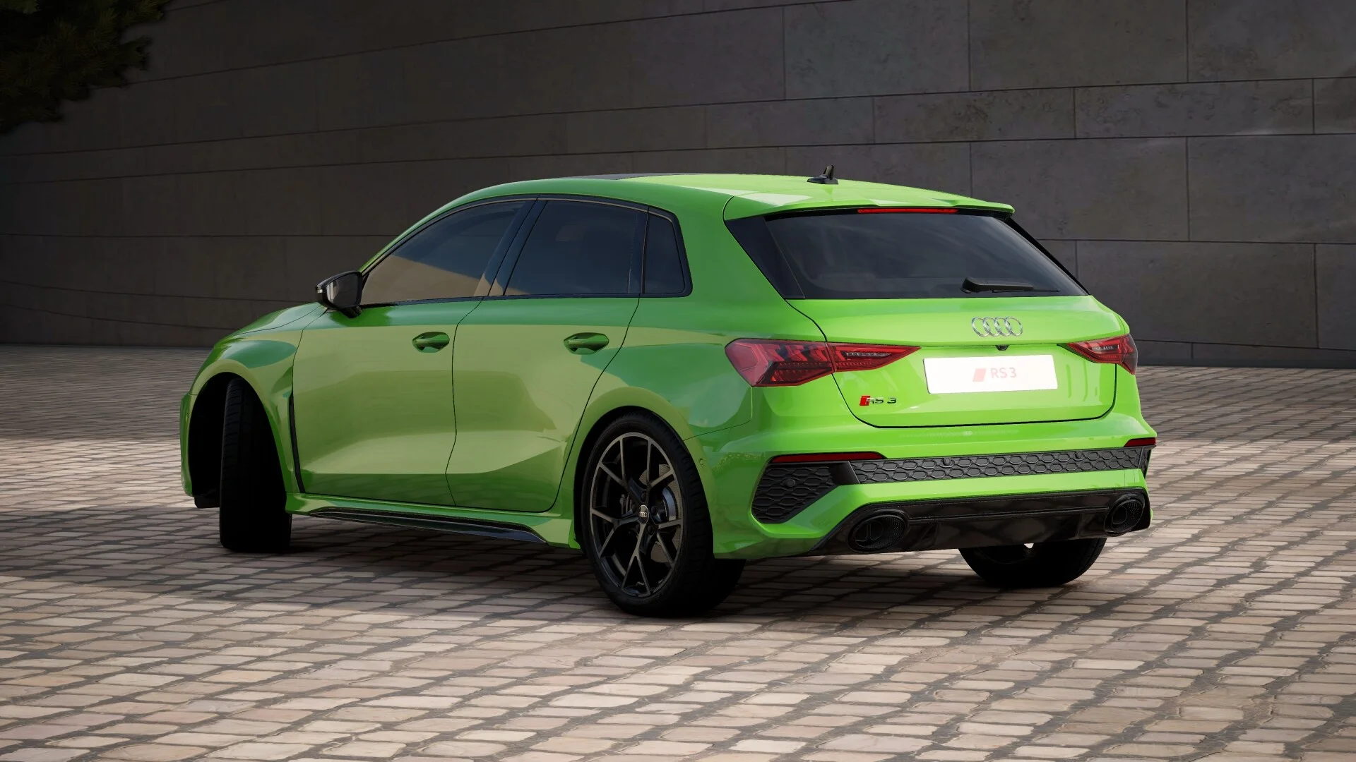 Z zewnątrz Audi RS 3 Sportback przyciąga spojrzenia dzięki agresywnym liniami, nisko osadzonemu nadwoziu i charakterystycznym detalom, takim jak sportowe zderzaki, duże wloty powietrza oraz wyraźne linie boczne. W połączeniu z dynamicznymi proporcjami, te elementy nadają samochodowi niepowtarzalny charakter.
