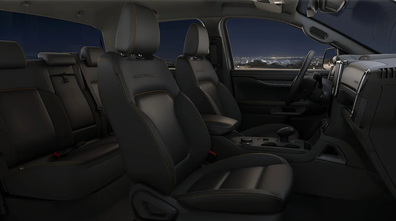 Wnętrze Forda Ranger Wildtrak X to mieszanka komfortu i funkcjonalności. Przestronna kabina oferuje wysoką jakość materiałów, a ergonomiczne rozmieszczenie elementów zapewnia wygodę podczas długich podróży. Zaawansowany system multimedialny, obsługiwanie głosowe i liczne udogodnienia sprawiają, że podróż tym pickupem staje się prawdziwym doświadczeniem.