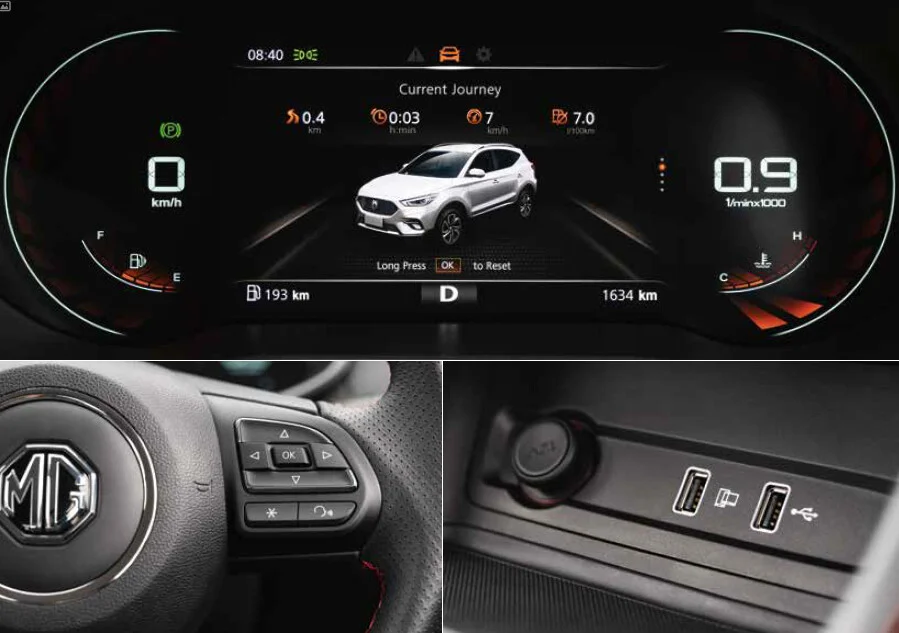 Wnętrze pojazdu MG ZS utrzymane jest w nowoczesnym stylu, oferując komfortową przestrzeń dla kierowcy i pasażerów. Ergonomicznie zaprojektowany kokpit jest intuicyjny w obsłudze, a wysokiej jakości materiały użyte do wykończenia podkreślają premium charakter auta. Dodatkowo, duży ekran dotykowy pełni funkcję centrum sterowania, umożliwiając obsługę wielu funkcji pojazdu.