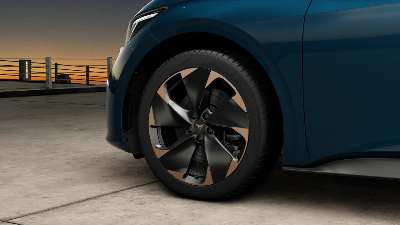 Design zewnętrzny Cupra Born e-Boost 58kWh emanuje sportowym charakterem i nowoczesnością. Agresywne linie karoserii, charakterystyczne dla Cupry ostre krawędzie oraz futurystyczne reflektory LED nadają temu modelowi wyjątkowy i rozpoznawalny wygląd. Aerodynamiczna sylwetka nie tylko przyciąga wzrok, ale również optymalizuje efektywność i zasięg jazdy. Ekskluzywne 20-calowe felgi aluminiowe podkreślają dynamiczną postawę pojazdu, a unikalne akcenty stylistyczne, takie jak miedziane detale, odzwierciedlają unikalną tożsamość marki.