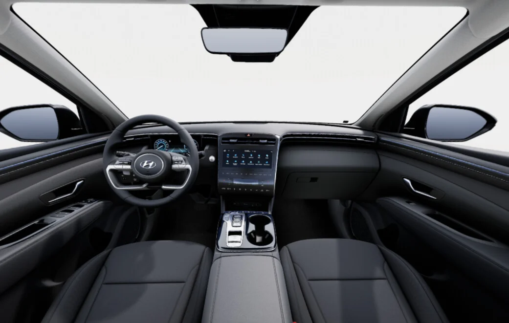 Wnętrze: Wnętrze Tucsona Hybrid Executive to synonim luksusu i komfortu. Wykończone wysokiej jakości materiałami, takimi jak skóra i miękkie plastiki, oferuje wygodę i elegancję. Przestronna kabina jest wyposażona w zaawansowany system infotainment z dużym, 10,25-calowym ekranem dotykowym, który umożliwia łatwy dostęp do systemów nawigacji, multimedialnych i kontroli pojazdu. Wersja Executive oferuje także wyjątkowe udogodnienia takie jak podgrzewane i wentylowane fotele przednie, które zapewniają komfort w każdych warunkach.