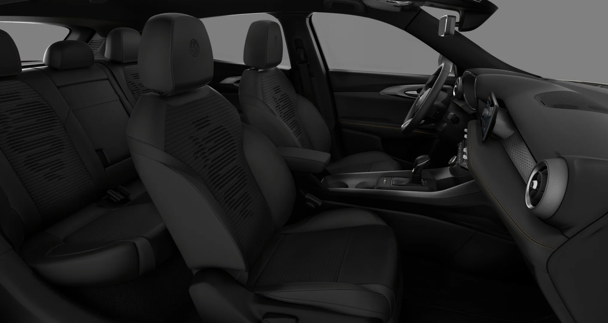 Wnętrze Alfa Romeo Tonale zostało zaprojektowane z myślą o najwyższym komforcie i funkcjonalności. Przestronna kabina oferuje najwyższej jakości materiały, ergonomiczne fotele wykończone skórą i Alcantarą oraz przemyślane rozwiązania, które zapewniają wygodę zarówno kierowcy, jak i pasażerom. Nowoczesny system multimedialny z dużym ekranem dotykowym, nawigacją oraz integracją smartfona poprzez Apple CarPlay i Android Auto zapewnia łatwy dostęp do wszystkich funkcji pojazdu. Cyfrowy kokpit oferuje intuicyjny dostęp do informacji o pojeździe, zwiększając komfort i bezpieczeństwo jazdy.