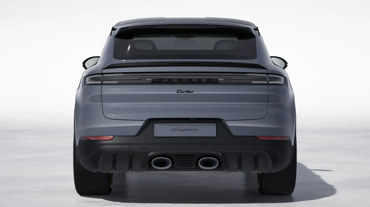 Zewnętrzny wygląd Porsche Cayenne Turbo E-Hybrid Coupé wyróżnia się nowoczesnymi i dynamicznymi liniami. Charakterystyczny grill, smukłe reflektory LED oraz muskularna sylwetka nadają mu prestiżowy i sportowy wygląd. Pakiet GT dodaje jeszcze więcej sportowego charakteru dzięki unikalnym elementom stylistycznym, takim jak aerodynamiczne zderzaki, 22-calowe felgi aluminiowe i wyraziste akcenty w kolorze czarnym. Te detale podkreślają luksusowy i dynamiczny charakter pojazdu, tworząc SUV-a, który przyciąga wzrok na drodze.