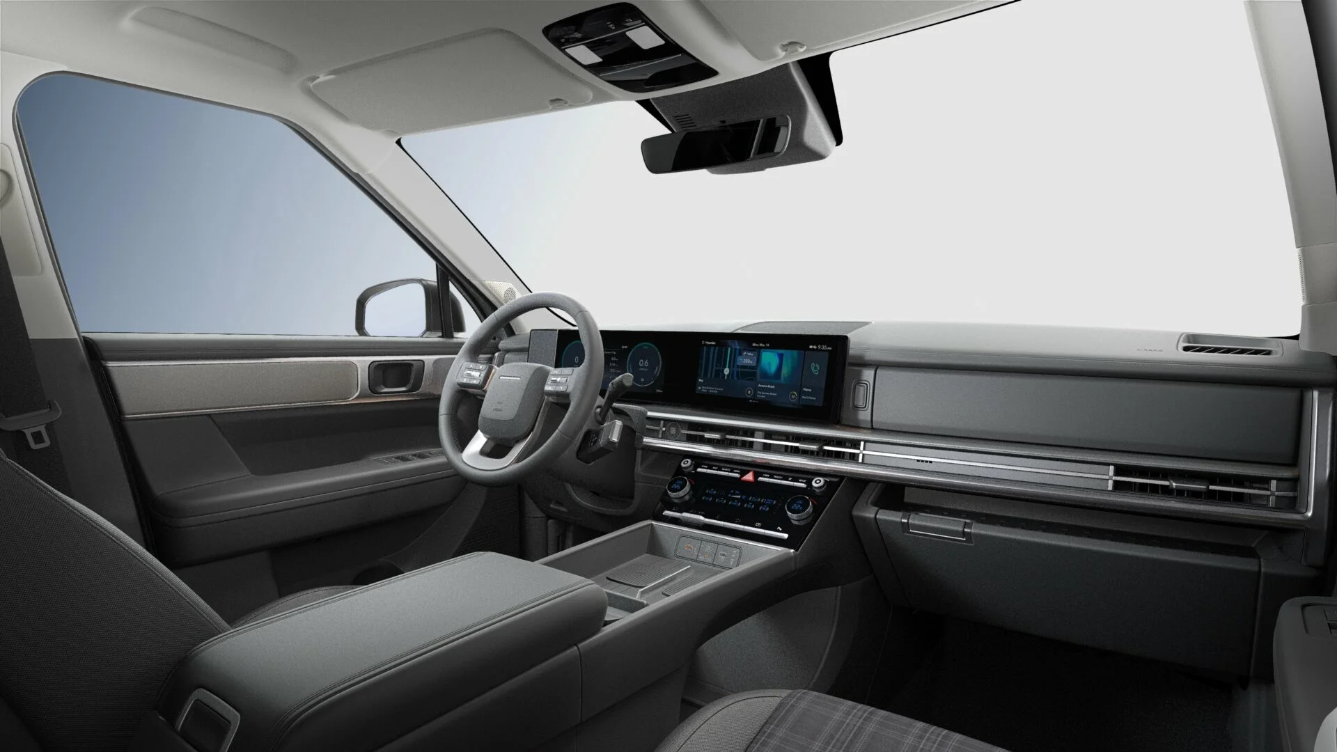 Wnętrze nowego Hyundaia Santa Fe zostało zaprojektowane z myślą o najwyższym komforcie i funkcjonalności. Przestronna kabina oferuje najwyższej jakości materiały, ergonomiczne fotele wykończone skórą oraz przemyślane rozwiązania, które zapewniają wygodę zarówno kierowcy, jak i pasażerom. Nowoczesny system multimedialny z dużym ekranem dotykowym, nawigacją oraz integracją smartfona poprzez Apple CarPlay i Android Auto zapewnia łatwy dostęp do wszystkich funkcji pojazdu. Cyfrowy kokpit Hyundai oferuje intuicyjny dostęp do informacji o pojeździe, zwiększając komfort i bezpieczeństwo jazdy.