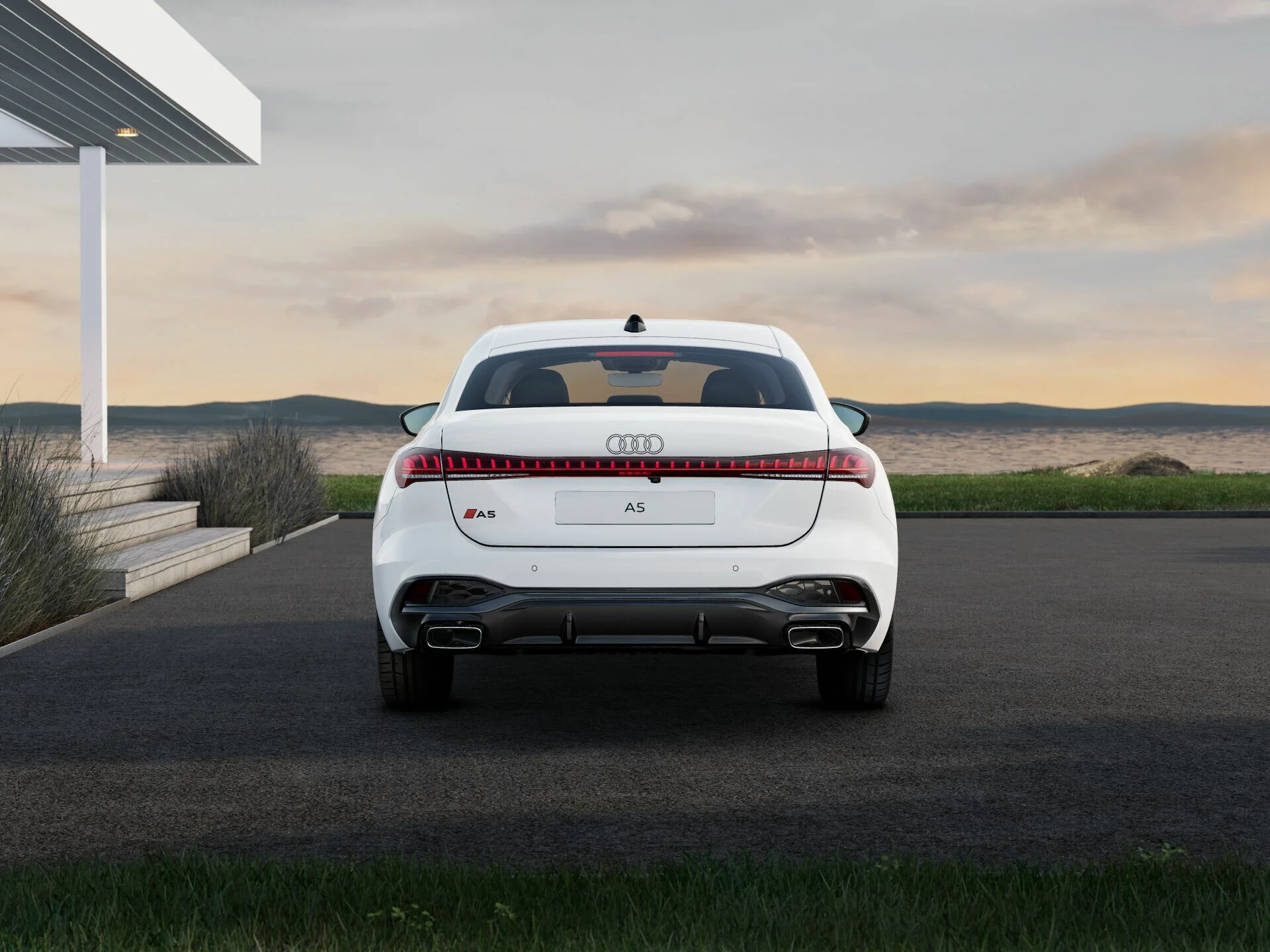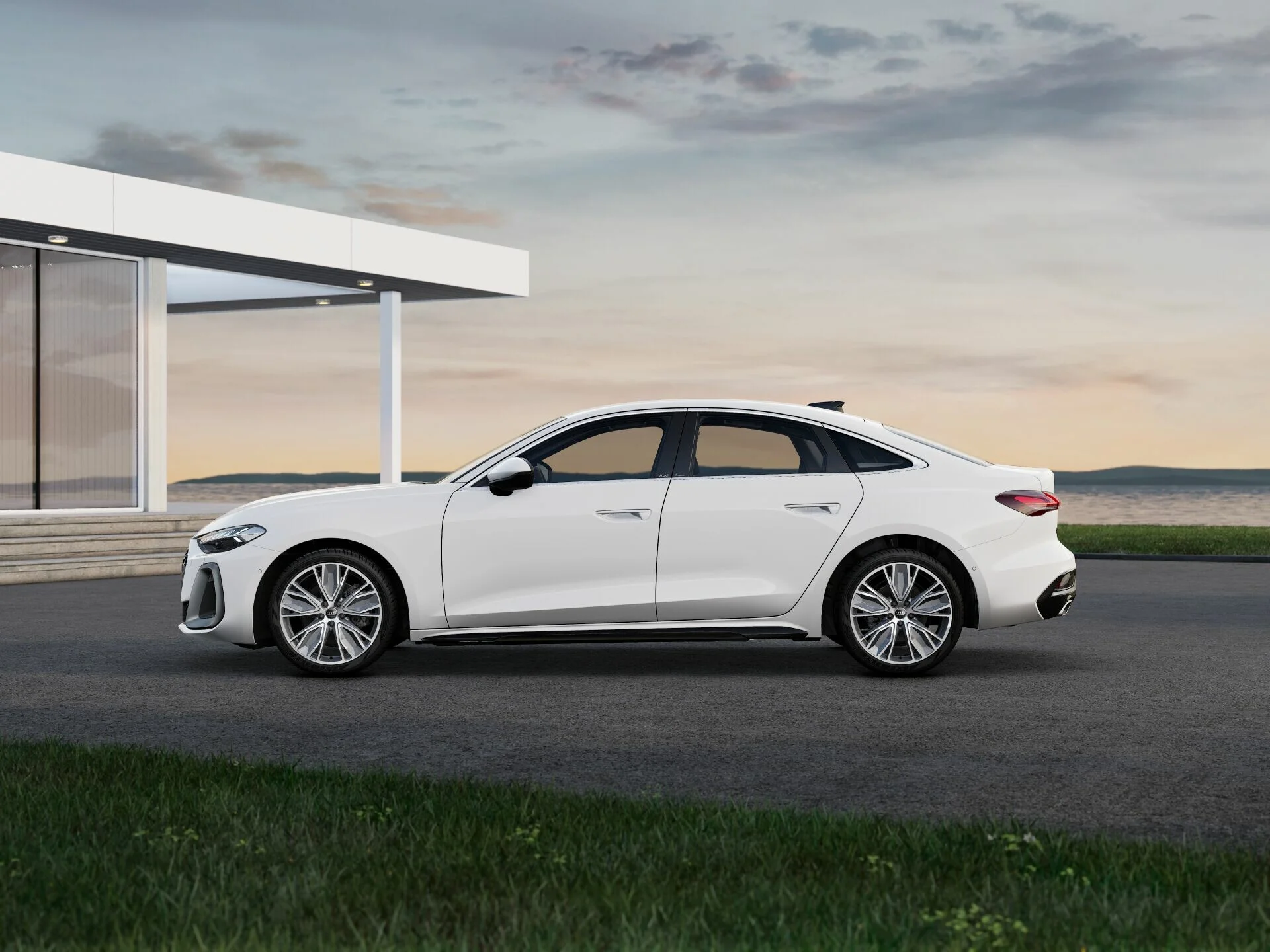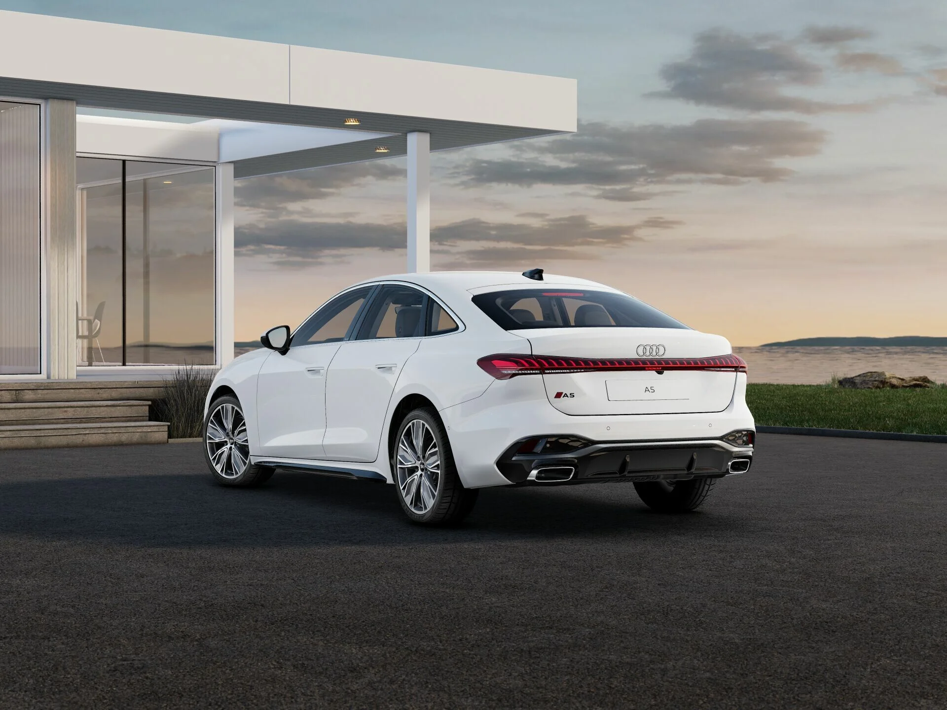 Zewnętrzny wygląd Audi A5 Limousine wyróżnia się nowoczesnymi i dynamicznymi liniami. Charakterystyczny grill Singleframe, smukłe reflektory LED oraz elegancka sylwetka nadają mu prestiżowy i sportowy wygląd. Stylowe detale, takie jak eleganckie felgi aluminiowe, subtelne chromowane akcenty i aerodynamiczne zderzaki, podkreślają jego luksusowy charakter, tworząc pojazd, który przyciąga wzrok na drodze.