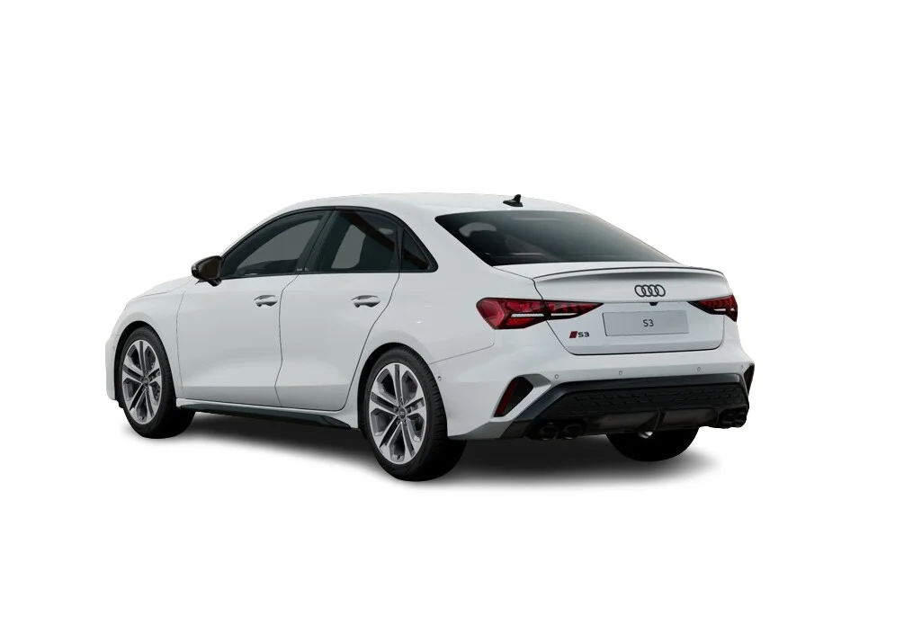 Zewnętrzny wygląd Audi S3 Limousine wyróżnia się muskularnymi i aerodynamicznymi liniami, które podkreślają jego sportowy charakter. Charakterystyczny szeroki grill Singleframe z logo S, agresywne reflektory LED oraz dynamiczna sylwetka nadają pojazdowi wyrazisty i elegancki wygląd. Stylowe detale, takie jak 18-calowe felgi aluminiowe, sportowe zderzaki oraz podwójne końcówki wydechu, podkreślają sportowy charakter tego wyjątkowego sedana.