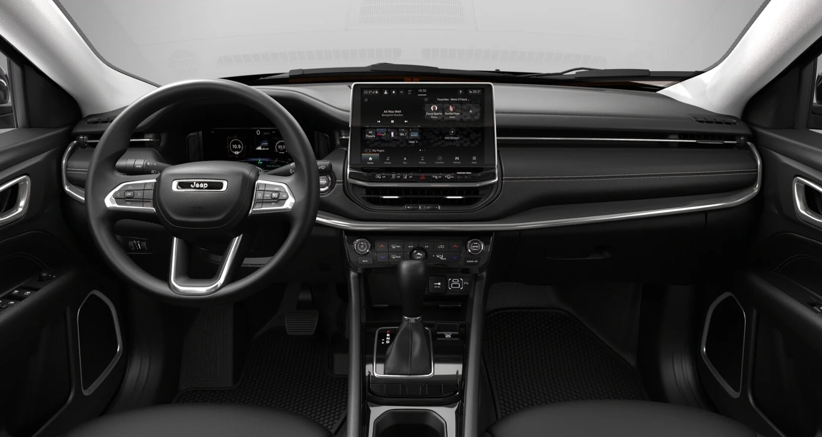 Wnętrze Jeepa Compass T4 Altitude to przestrzeń zaprojektowana z myślą o komforcie i nowoczesności. Kabina została wykończona wysokiej jakości materiałami, a ergonomiczne fotele zapewniają wygodę zarówno podczas krótkich, jak i długich podróży. Na pokładzie znajduje się nowoczesny system multimedialny Uconnect z dużym ekranem dotykowym, który obsługuje nawigację, multimedia oraz integrację z Apple CarPlay i Android Auto, zapewniając łatwy dostęp do ulubionych aplikacji i funkcji. Dodatkowo, cyfrowy zestaw wskaźników dostarcza kierowcy wszystkie kluczowe informacje w przejrzysty sposób.