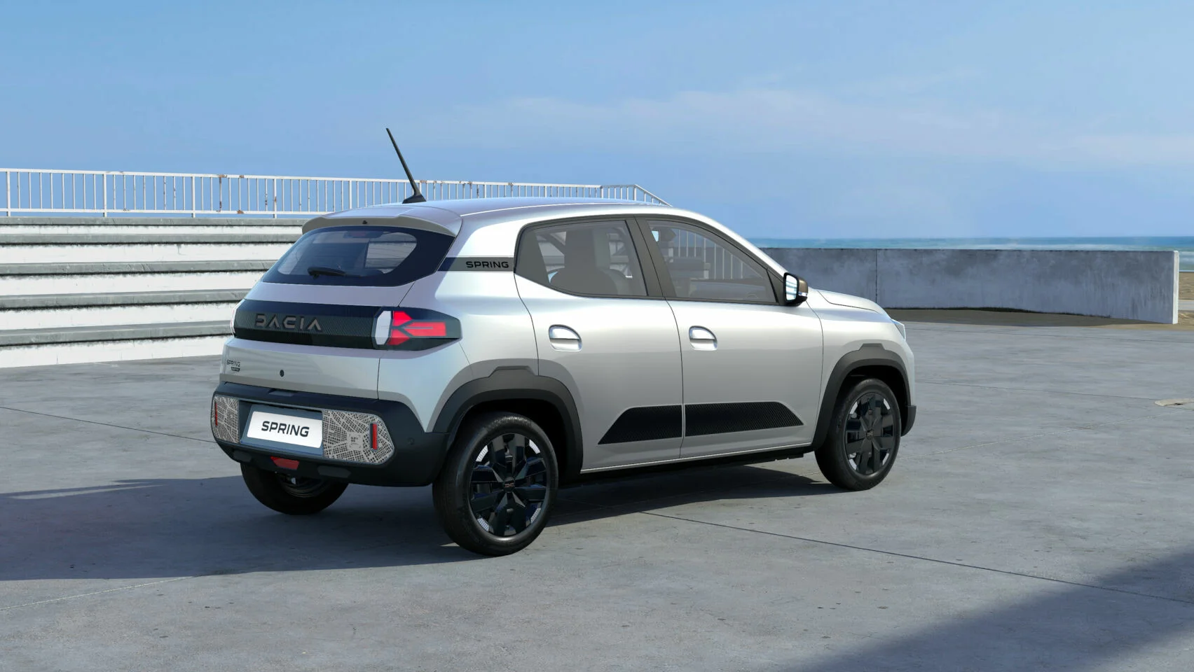 Dacia Spring ma nowoczesną, kompaktową sylwetkę, która świetnie wpisuje się w miejskie warunki. Z charakterystycznym przednim grillem, prostymi liniami nadwozia i wyrazistymi reflektorami LED, pojazd łączy elegancję z funkcjonalnością. Z boku, Spring wyróżnia się zwartą konstrukcją, idealną do parkowania w ciasnych miejscach. Z tyłu, samochód posiada proste, ale nowoczesne reflektory, które nadają mu lekki i dynamiczny wygląd. 14-calowe felgi aluminiowe podkreślają prostotę i efektywność pojazdu, jednocześnie nadając mu charakteru.