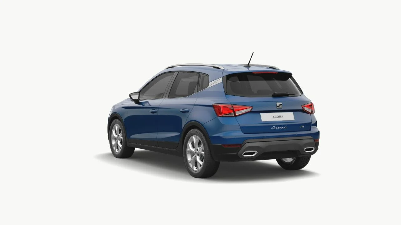Seat Arona FR wyróżnia się wyrazistym, sportowym wyglądem, który przyciąga wzrok na drodze. Z przodu pojazdu znajduje się charakterystyczna osłona chłodnicy z logo Seat oraz smukłe reflektory LED, które nadają mu dynamiczny charakter. Z boku, Arona FR posiada wyraźnie zaznaczone przetłoczenia na nadwoziu i 17-calowe felgi aluminiowe, które podkreślają jego sportowy wygląd. Tył pojazdu zdobią nowoczesne reflektory LED, zgrabny spoiler oraz chromowane akcenty, które nadają pojazdowi elegancji i dynamicznego wyglądu. Arona FR to crossover, który łączy sportowy charakter z nowoczesnym stylem.