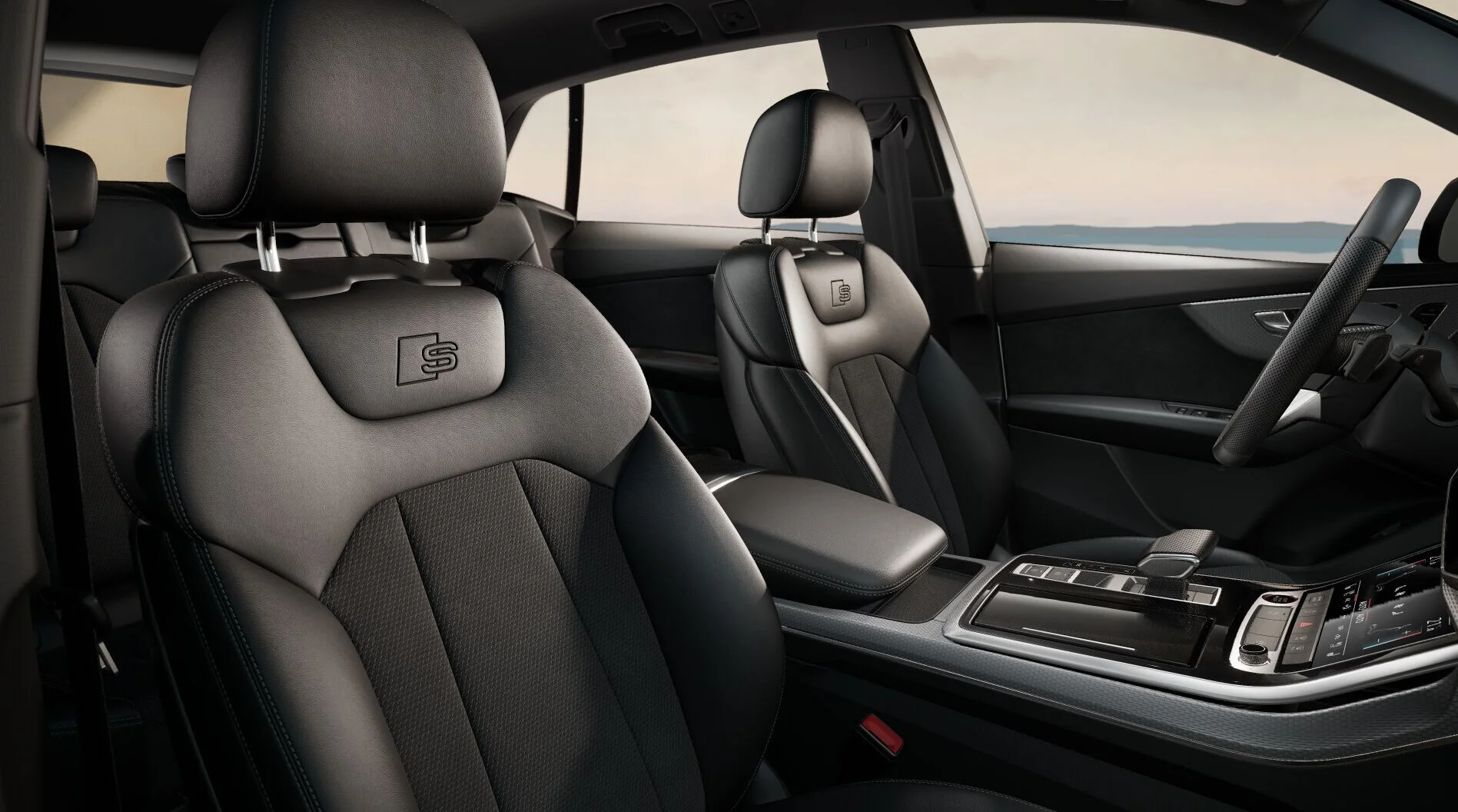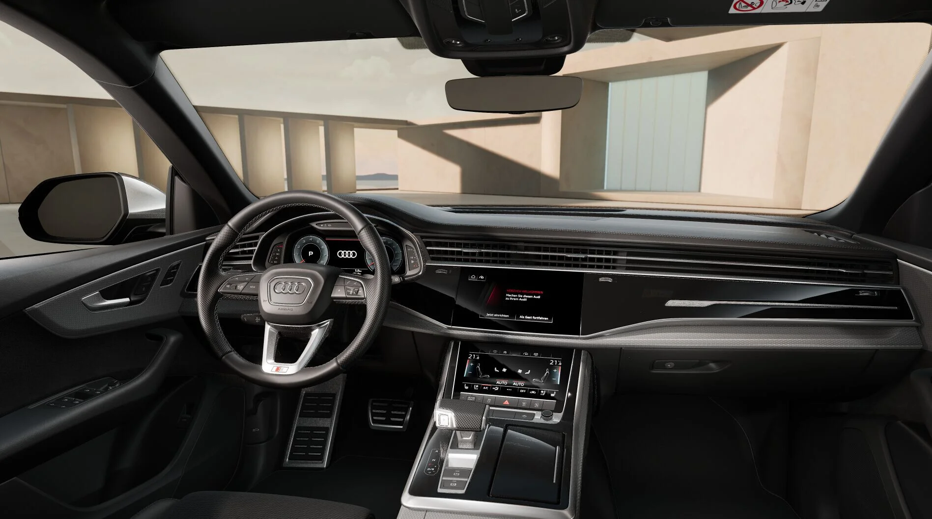 Wnętrze Audi SQ8 TFSI oferuje najwyższy poziom komfortu i luksusu, łącząc nowoczesne technologie z doskonałą jakością wykonania.