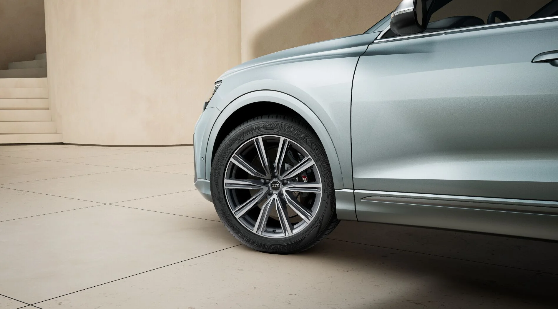 Audi SQ8 TFSI to połączenie elegancji, sportowego stylu i zaawansowanej technologii. Muskularne linie nadwozia, charakterystyczny grill Singleframe oraz reflektory LED podkreślają jego nowoczesny i dynamiczny wygląd. Standardowe 21-calowe felgi aluminiowe nadają pojazdowi sportowego charakteru, a opcjonalne 22- lub 23-calowe felgi dodatkowo wzmacniają jego prezencję.