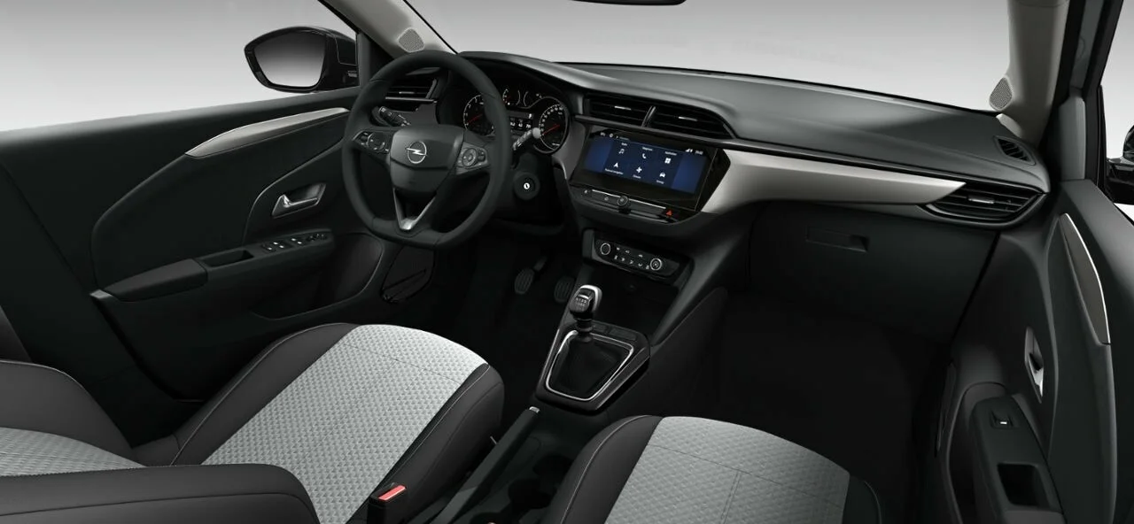 W kabinie Corsy znajdziesz przemyślane rozwiązania i solidne wykończenie. Tapicerka materiałowa Fresez w kolorze czarnym nadaje wnętrzu eleganckiego charakteru, a ergonomicznie rozmieszczone elementy sterujące zapewniają łatwość obsługi. Fotele oferują odpowiedni komfort na co dzień, a pojemność przestrzeni bagażowej zaskakuje jak na auto tej klasy, umożliwiając przewóz zakupów czy bagażu na weekendowy wypad.