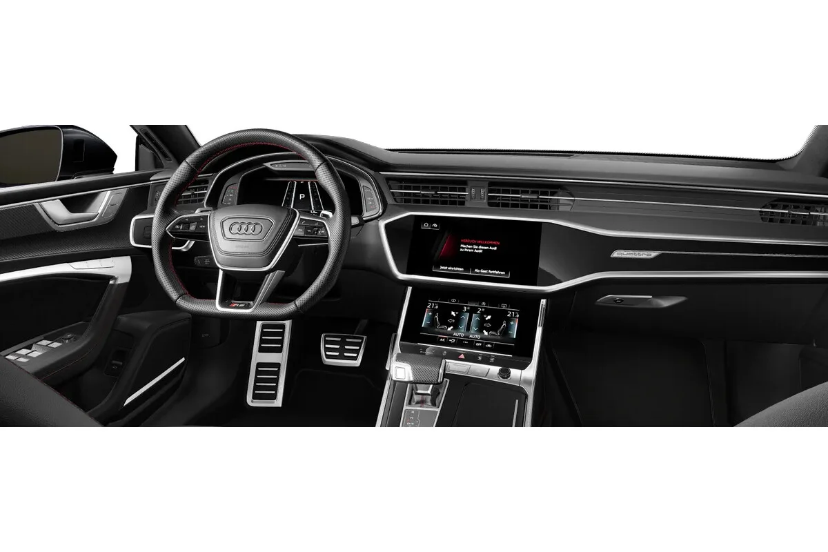 We wnętrzu czeka kabina klasy premium – z najwyższej jakości materiałami, sportowymi fotelami RS, tapicerką z alcantary i skóry, a także cyfrowym kokpitem Audi Virtual Cockpit Plus i rozbudowanym systemem MMI. RS7 oferuje także wysoki poziom przestronności i funkcjonalności – to prawdziwy sportowiec gotowy na długie trasy.