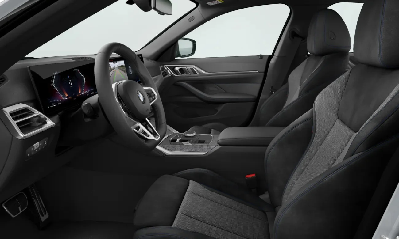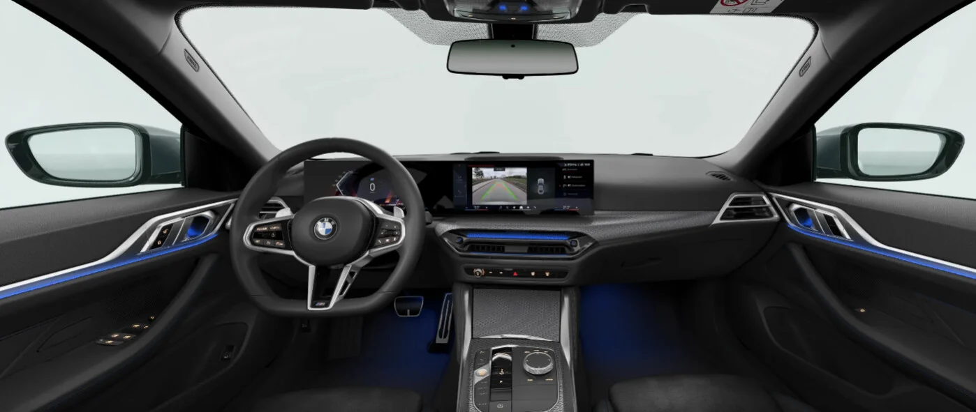 Wnętrze BMW 420i Gran Coupé zaprojektowano z myślą o najwyższym komforcie i nowoczesności. Przestronna kabina oferuje najwyższej jakości materiały, takie jak skóra Sensatec, oraz ergonomiczne fotele, które zapewniają wygodę zarówno kierowcy, jak i pasażerom. Nowoczesny system multimedialny iDrive z dużym ekranem dotykowym, nawigacją oraz integracją smartfona poprzez Apple CarPlay i Android Auto zapewnia łatwy dostęp do wszystkich funkcji pojazdu. Cyfrowy kokpit BMW Live Cockpit Plus oferuje intuicyjny dostęp do informacji o pojeździe, zwiększając komfort i bezpieczeństwo jazdy.