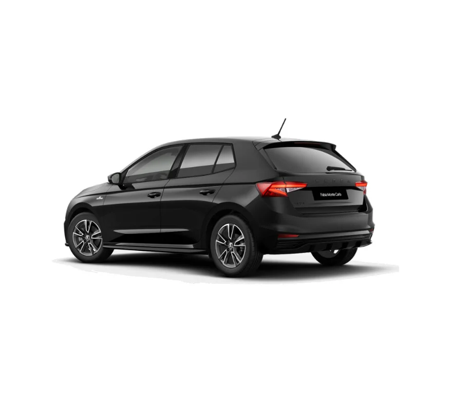 Škoda Fabia Monte Carlo to usportowiona wersja popularnego hatchbacka, wyróżniająca się agresywnym wyglądem i sportowymi detalami. Czarne akcenty nadwozia, 17-calowe felgi aluminiowe oraz emblematy Monte Carlo podkreślają dynamiczną sylwetkę i młodzieżowy charakter tego modelu.
