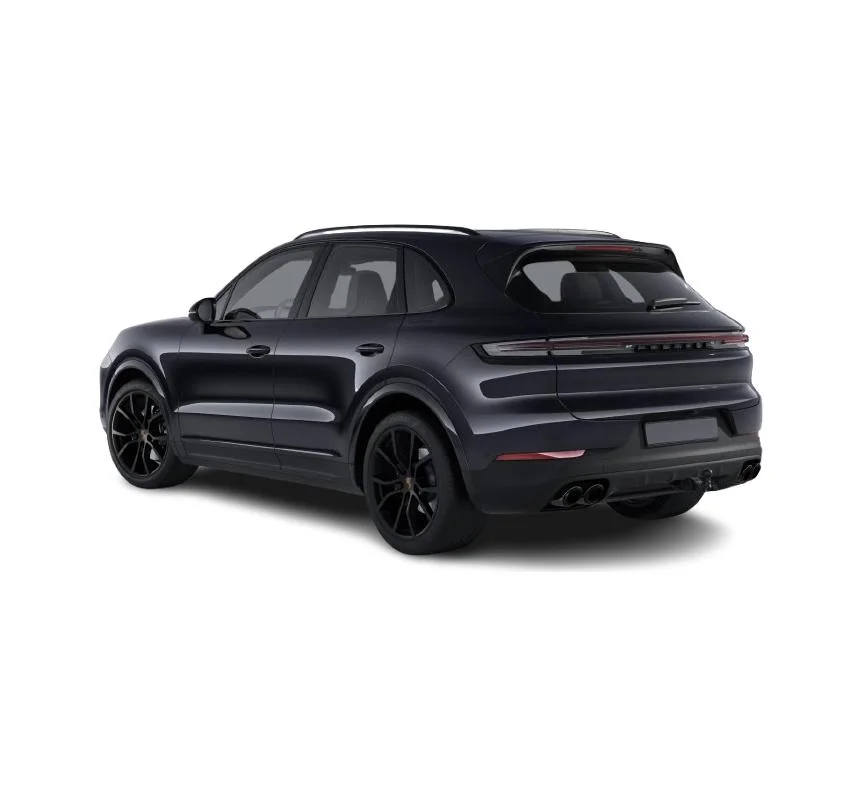 Porsche Cayenne w najnowszej odsłonie zachwyca połączeniem prestiżowej elegancji z dynamicznym charakterem. Chromite Black Metallic i pakiet zewnętrzny z czarnymi, połyskującymi detalami podkreślają sportową linię nadwozia. 21‑calowe obręcze Cayenne Exclusive Design w satynowej czerni oraz przyciemniane reflektory LED Matrix HD dodają mu wyjątkowego charakteru na drodze.
