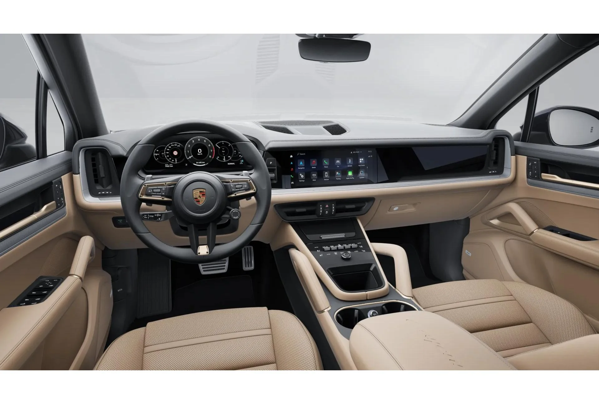 Kabina Cayenne łączy sportowy charakter z komfortem podróży. Fotele sportowe adaptacyjne z 18‑stopniową regulacją elektryczną, podgrzewaniem i wentylacją zapewniają wygodę w każdych warunkach. Dwukolorowa tapicerka z gładkiej skóry w odcieniu czerni i Mojave Beige oraz pakiet akcentów w kolorze Neodyme tworzą atmosferę ekskluzywnego SUV‑a. Panoramiczny dach i czterostrefowa klimatyzacja dodatkowo podnoszą komfort jazdy.