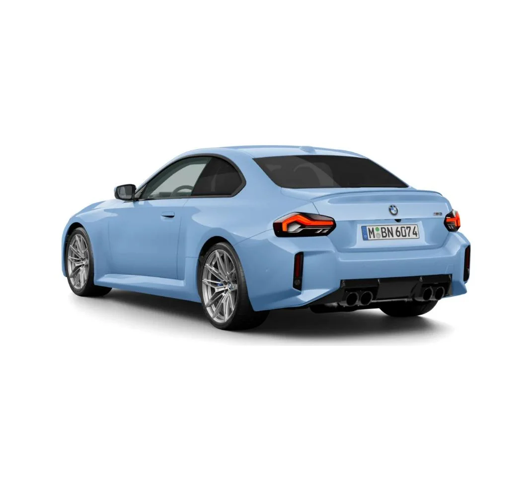 Stylistyka BMW M2 łączy agresywne akcenty z wyrafinowanymi detalami. Obramowania M Shadowline w czerni na wysoki połysk, podświetlane listwy M oraz charakterystyczna podsufitka M Anthracite podkreślają sportowy klimat wnętrza. Z zewnątrz uwagę przyciągają proporcje typowe dla modeli M oraz precyzyjnie dopracowane detale aerodynamiczne. To samochód, który równie dobrze wygląda zaparkowany, jak i w pełnym pędzie.