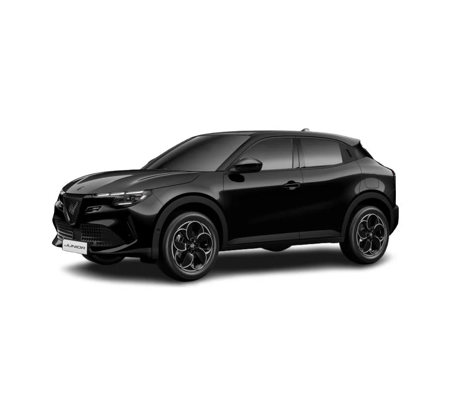 Alfa Romeo Junior Elettrica to kompaktowy SUV, który łączy włoski styl z nowoczesną technologią. Smukłe linie nadwozia, charakterystyczny grill „Scudetto Leggenda” i reflektory Full-LED nadają autu wyrazisty charakter. Czarne lusterka zewnętrzne i 18-calowe aluminiowe obręcze „Petali” podkreślają sportowy wygląd, a pastelowy lakier Sempione dodaje elegancji.