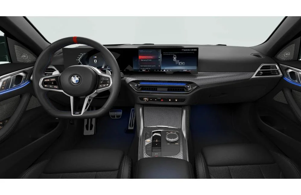 We wnętrzu znajdziemy sportowe fotele z elektryczną regulacją i pamięcią ustawień kierowcy, które zapewniają idealne podparcie. Podsufitka M Anthracite, pasy z przeszyciami w barwach M oraz oświetlenie ambientowe budują wyjątkową atmosferę. Automatyczna klimatyzacja i bogate wyposażenie komfortowe podnoszą przyjemność codziennego użytkowania. Całość utrzymana jest w duchu premium, gdzie sport i wygoda idą w parze.