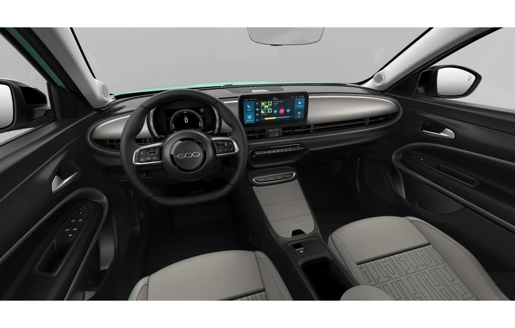 Fiat 600 La Prima wyposażony jest w system multimedialny Uconnect z 10,25-calowym ekranem dotykowym i nawigacją, który wspiera obsługę smartfonów i oferuje bezprzewodową ładowarkę. Cyfrowe zegary 7” zapewniają czytelne informacje podczas jazdy. System audio z sześcioma głośnikami dba o dobre nagłośnienie wnętrza, a rozbudowane usługi łączności podnoszą komfort korzystania z auta na co dzień.