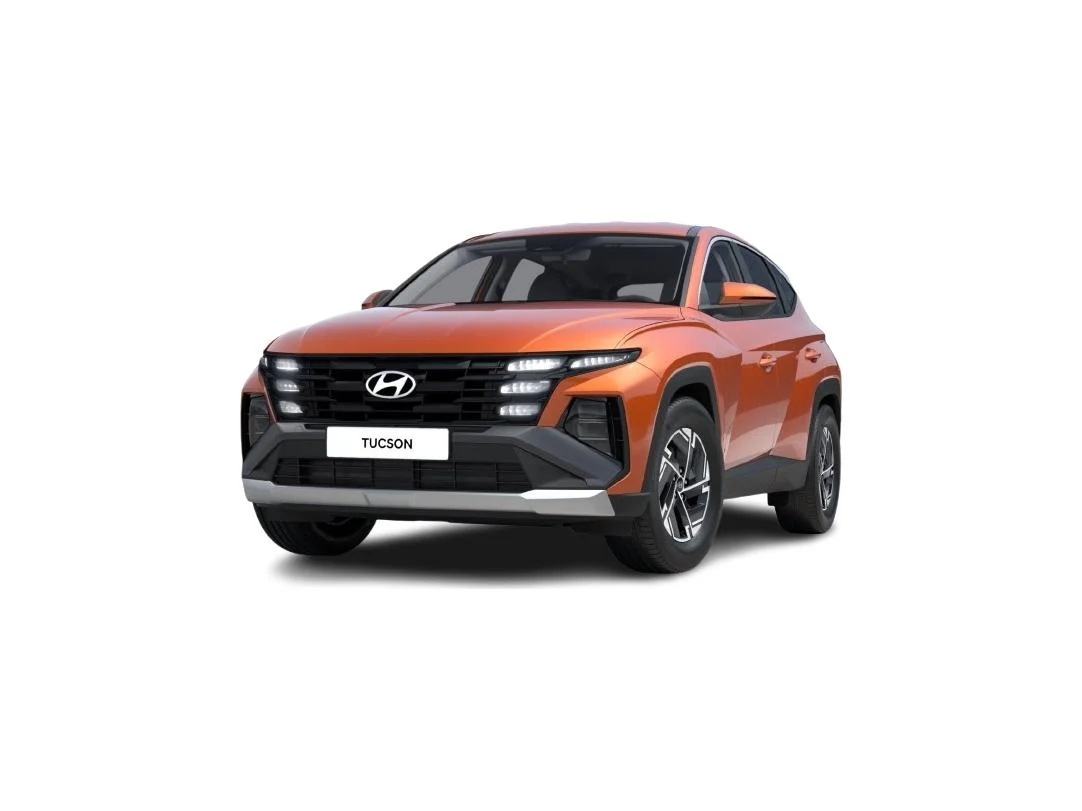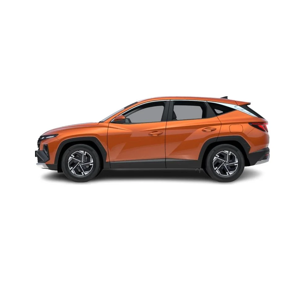Hyundai Tucson w wersji Modern wyróżnia się dynamicznymi liniami nadwozia i nowoczesnym stylem. Charakterystyczne reflektory LED, szeroki grill i pomarańczowy lakier Jupiter Orange Metallic sprawiają, że samochód prezentuje się odważnie i elegancko. To SUV, który doskonale łączy funkcjonalność z atrakcyjnym wyglądem.