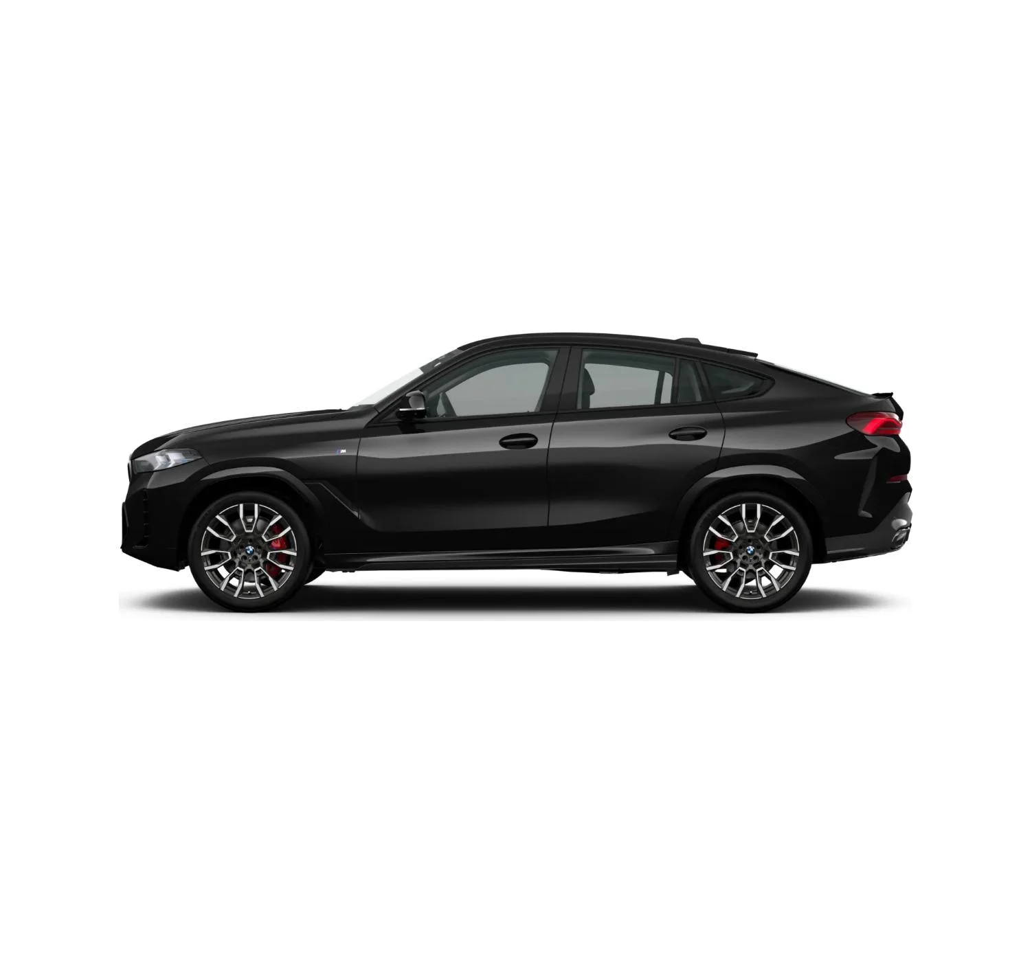 BMW X6 xDrive40i w pakiecie M Pro prezentuje charakterystyczną dla marki sylwetkę SUV-a coupe z dynamicznie opadającą linią dachu. Czarny lakier Szafir i 21-calowe felgi M V-spoke w dwukolorowym wykończeniu nadają mu sportowego charakteru. Elementy Shadowline oraz charakterystyczne podświetlane nerki Iconic Glow podkreślają nowoczesny i prestiżowy styl auta.
