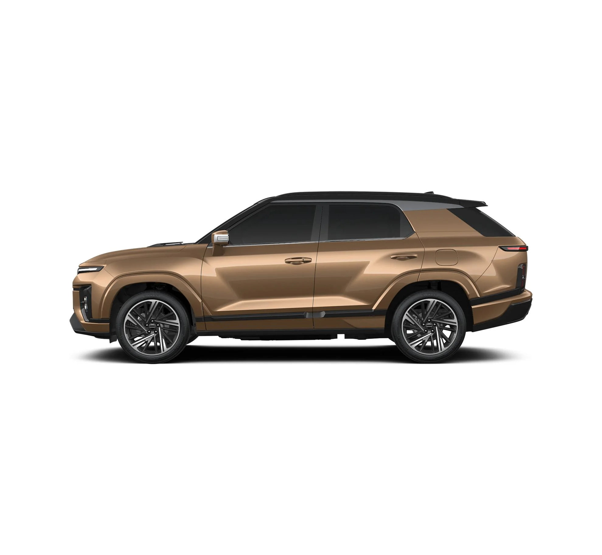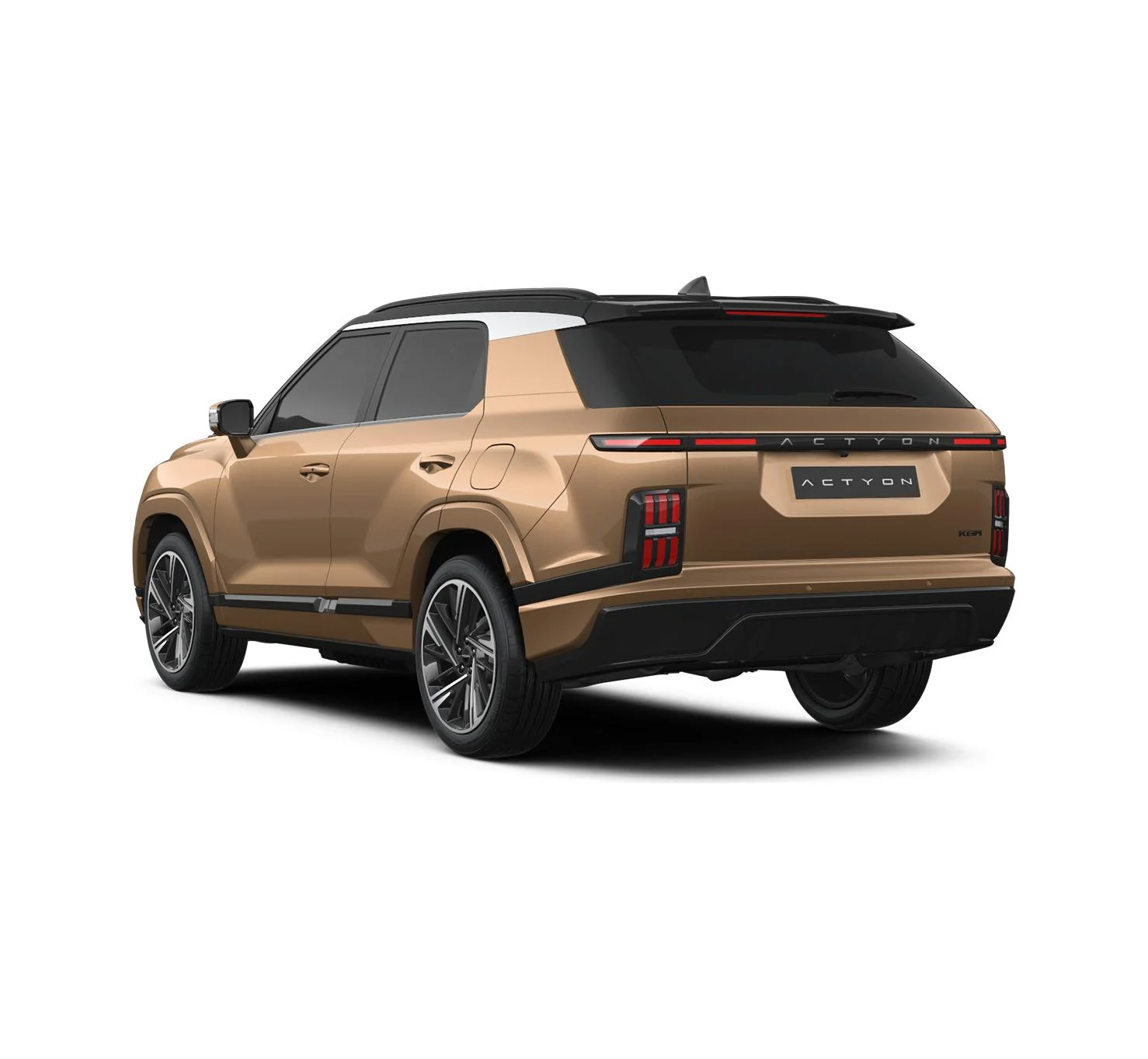 KGM Actyon w wersji Wild prezentuje się nowocześnie i solidnie, z charakterystyczną linią nadwozia i odważnym grillem. Dwukolorowy lakier Royal Copper w połączeniu z czarnym dachem i tylnym spoilerem podkreśla elegancję oraz nadaje autu wyrazistego charakteru. 20-calowe felgi aluminiowe o diamentowym wykończeniu dopełniają całości, sprawiając, że samochód przyciąga spojrzenia zarówno w mieście, jak i na trasie.