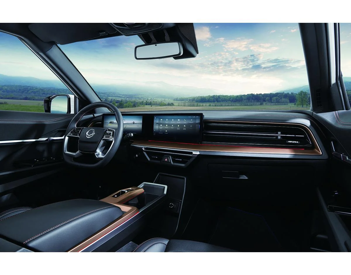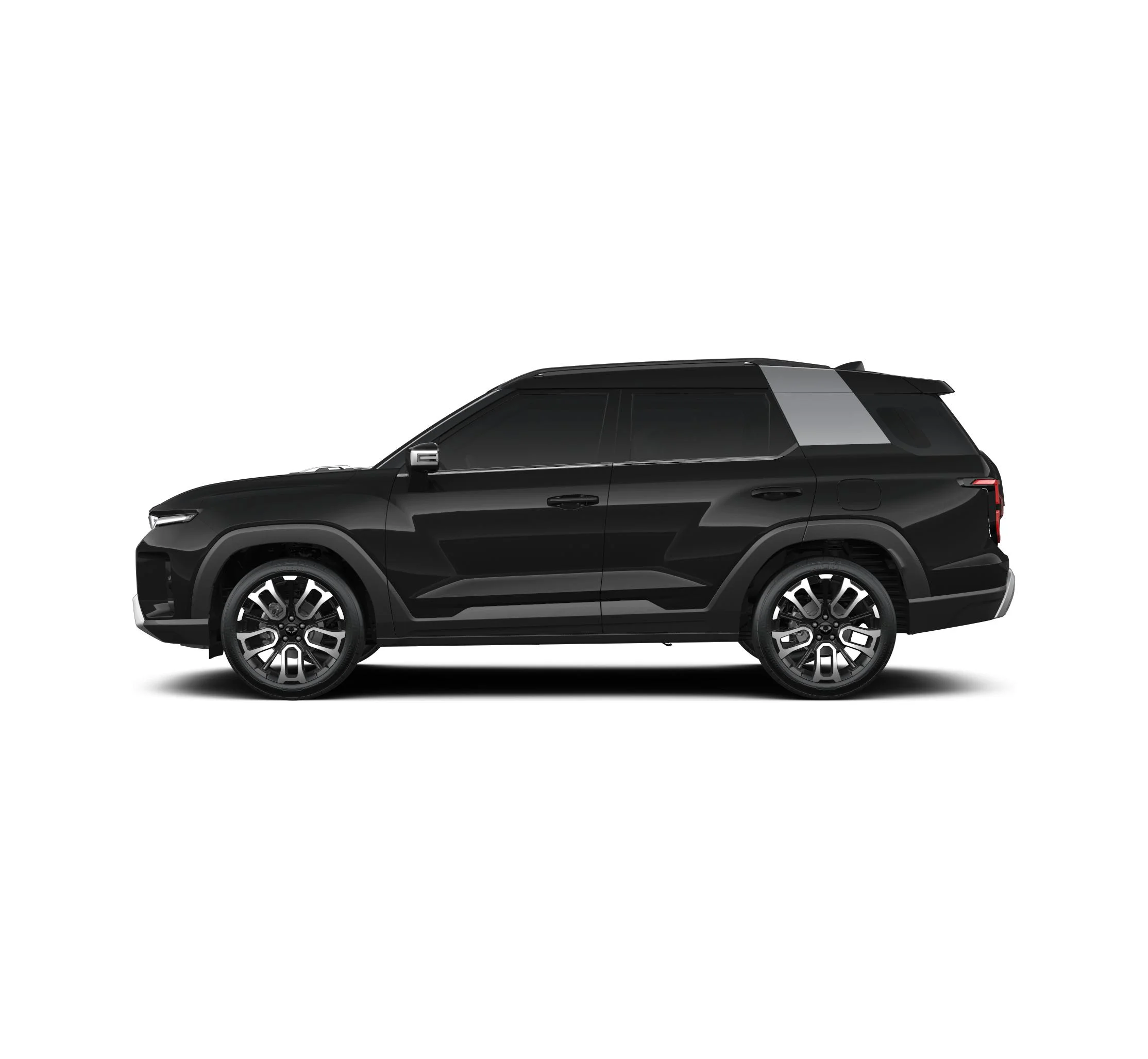 KGM Torres w wersji Wild to masywny SUV o wyrazistych liniach nadwozia, który wzbudza respekt na drodze. Lakier Space Black nadaje mu eleganckiego i dynamicznego wyglądu, a duży grill i charakterystyczne reflektory podkreślają nowoczesny styl. 20-calowe felgi aluminiowe dodają sportowego akcentu i świetnie komponują się z muskularną sylwetką auta.