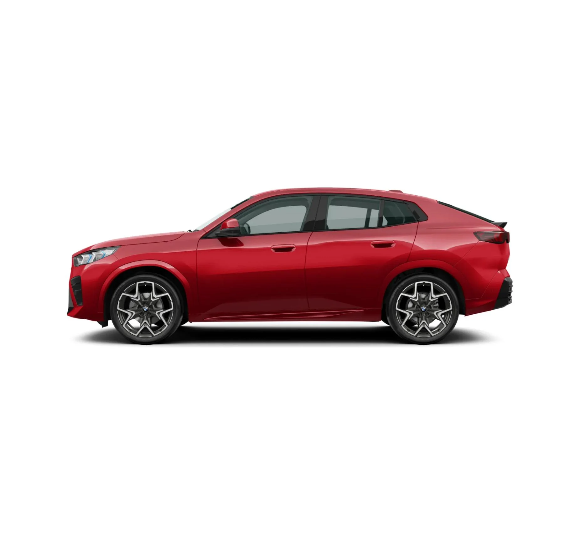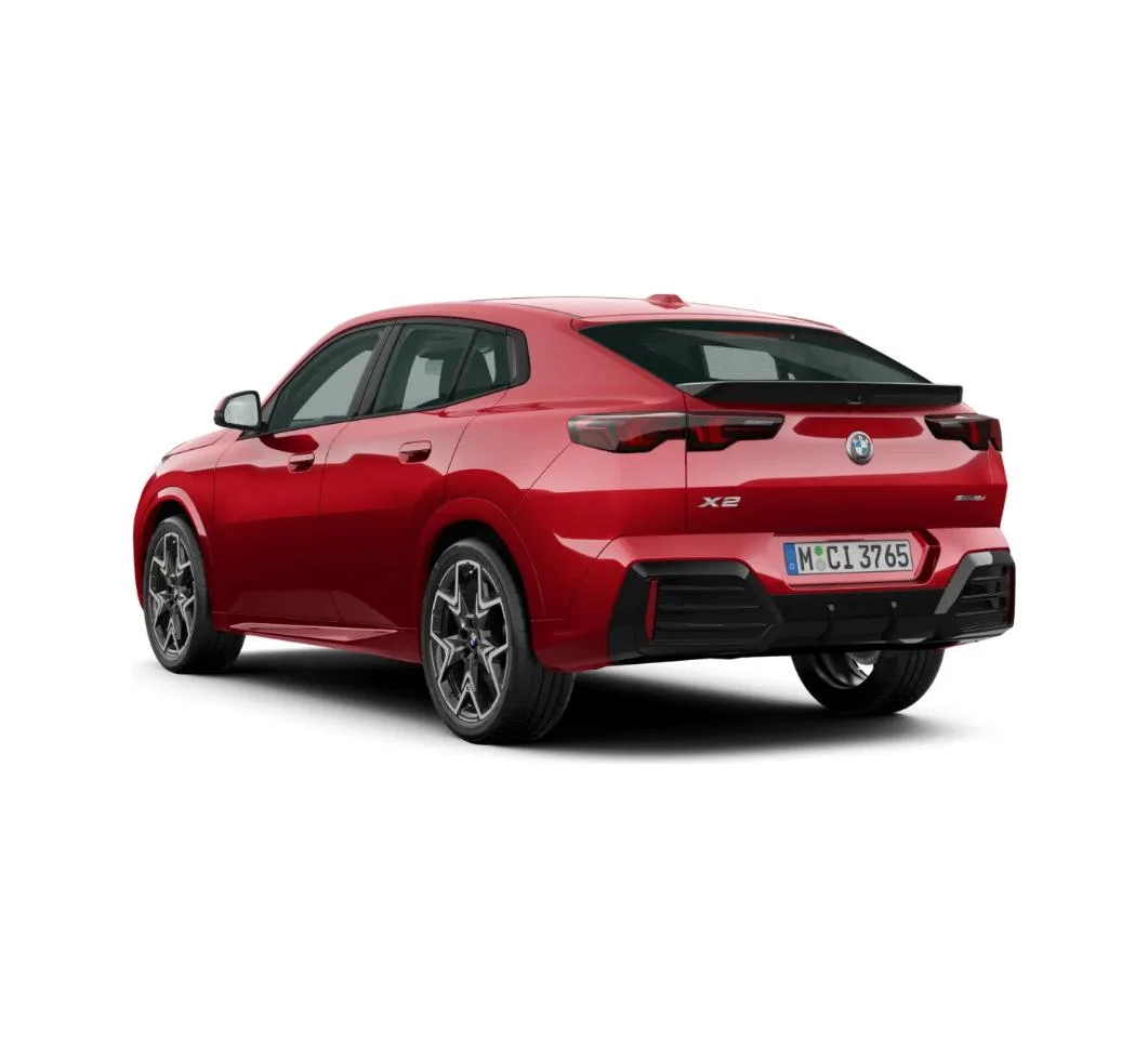 BMW X2 sDrive18d w pakiecie M Sport wyróżnia się agresywnie stylizowanym nadwoziem, czarnymi detalami Shadowline i 20-calowymi felgami M V-spoke. Czerwony lakier Fire Red nadaje mu wyjątkowej energii i sprawia, że auto wyróżnia się na drodze. To kompaktowy SUV, który łączy elegancję z odważnym sportowym stylem.