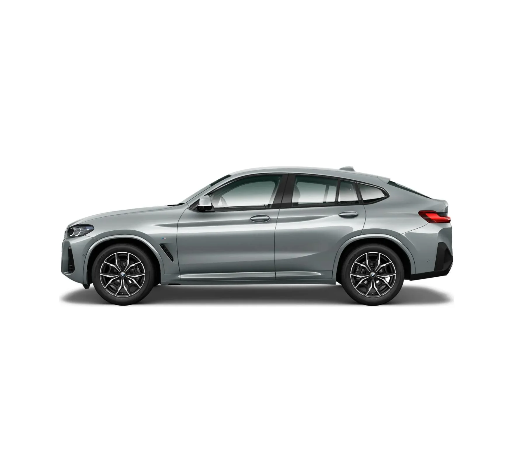 BMW X4 xDrive30d w wersji M Sport wyróżnia się dynamiczną linią nadwozia oraz charakterystycznymi elementami pakietu aerodynamicznego M. Obramowania Shadowline, sportowe akcenty stylistyczne i 19-calowe obręcze aluminiowe nadają autu wyrazistego charakteru. To SUV coupe, który łączy elegancję premium z rasowym sportowym sznytem.