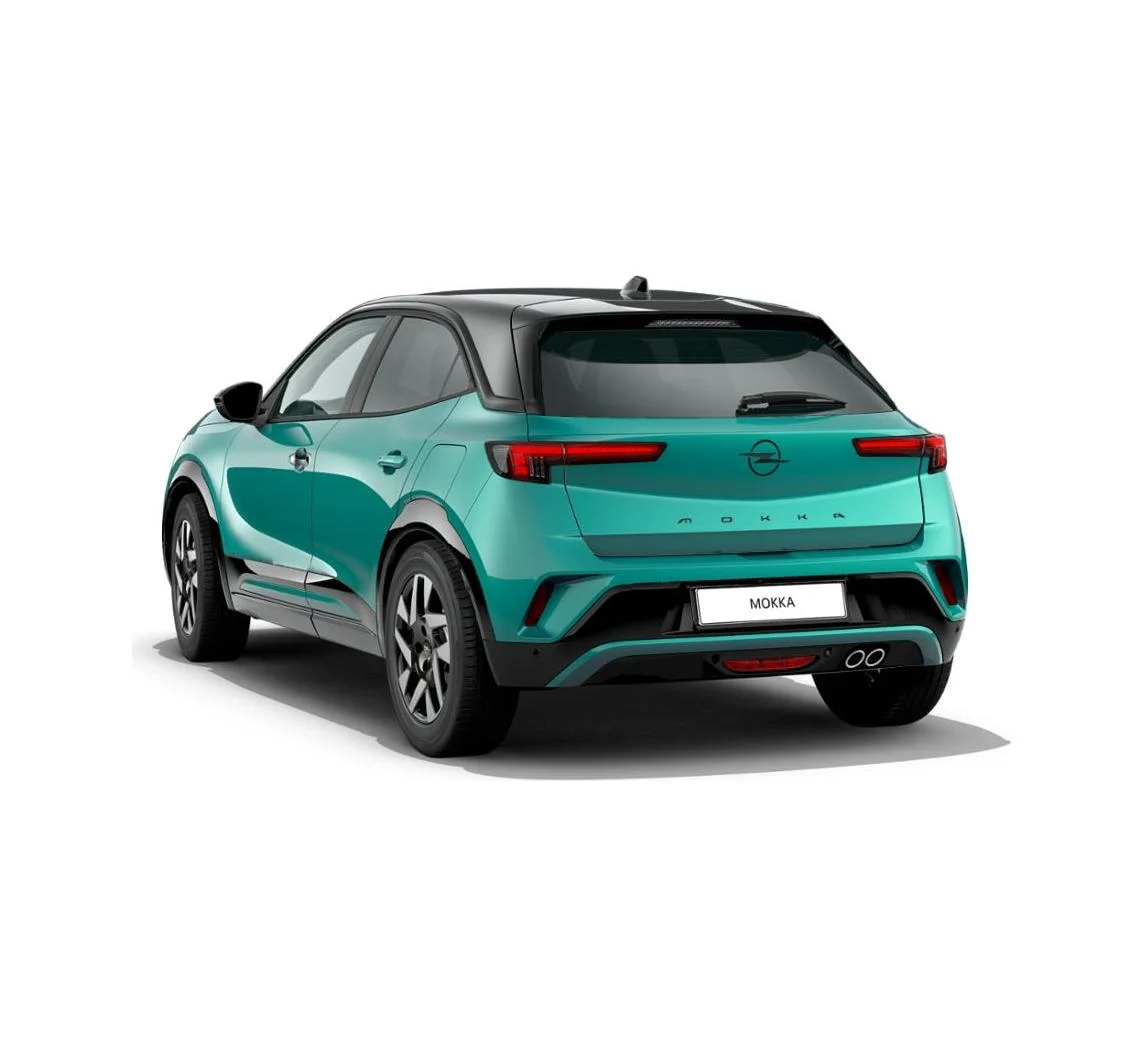Opel Mokka GS wyróżnia się odważnym wyglądem i wyrazistymi detalami. Charakterystyczny przedni pas Opel Vizor, czarny dach i kontrastujące dodatki nadają mu dynamiczny, miejski styl. Zielony lakier Tropikal podkreśla sportowy charakter auta, a 17-calowe dwukolorowe felgi ze stopów lekkich dopełniają nowoczesnej sylwetki.