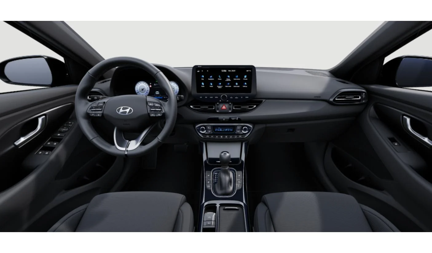 Wnętrze i30 w wersji SMART to praktyczna i ergonomiczna przestrzeń, idealna do codziennego użytku. Fotele z regulacją wysokości, podgrzewana kierownica, przesuwany podłokietnik i bogata ilość schowków zwiększają komfort prowadzenia. Cyfrowe zegary 10,25” oraz duży ekran multimedialny nadają kokpitowi nowoczesny charakter, a dwustrefowa klimatyzacja automatyczna dba o wygodę podczas każdej trasy. To przestrzeń, która jest przemyślana i intuicyjna w obsłudze.