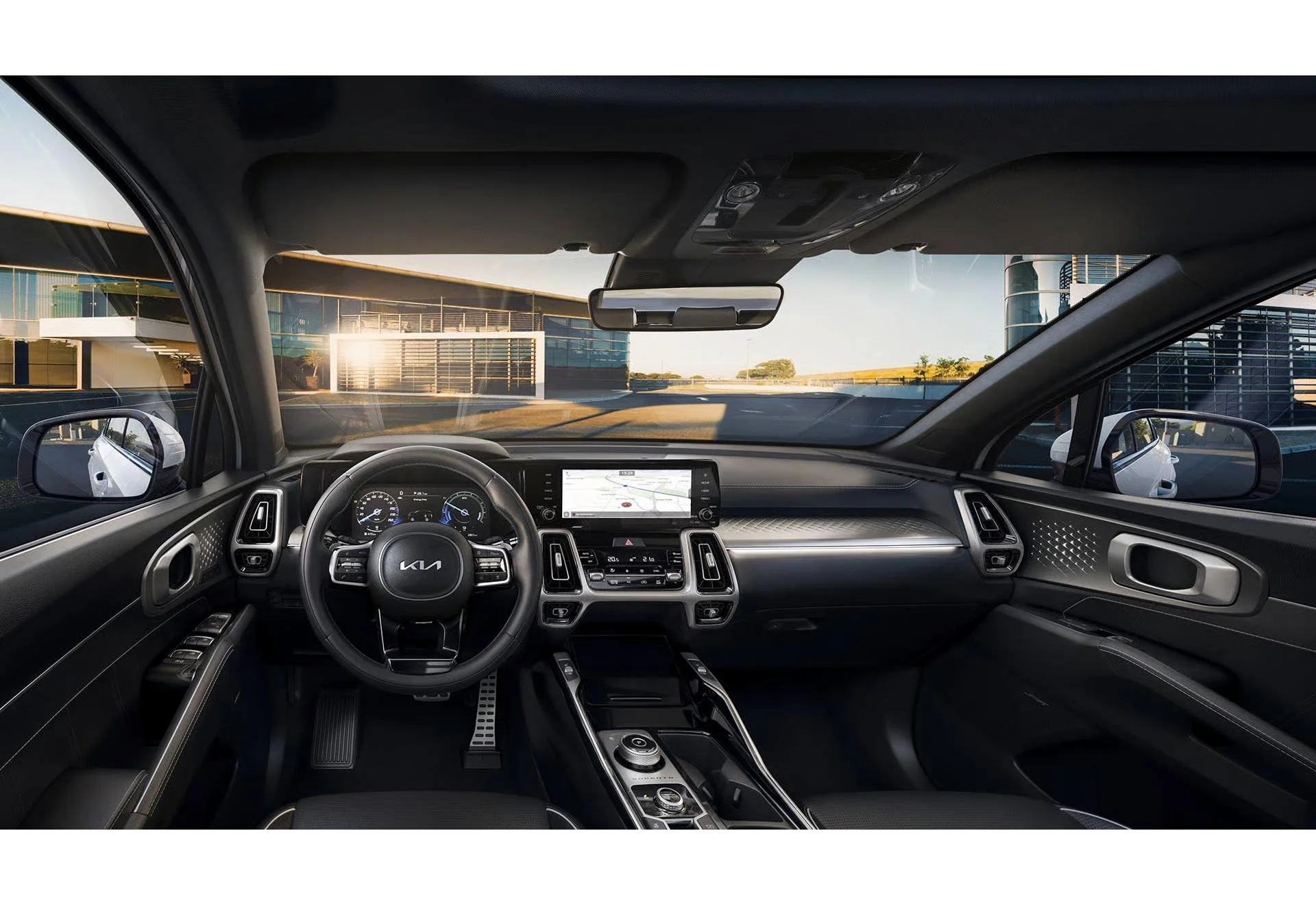 Kabina w tej wersji to połączenie luksusu, ergonomii i technologii. Skórzana tapicerka Nappa w kolorze Satin Black, oświetlenie ambientowe i aluminiowe detale tworzą elegancką przestrzeń, którą doceni każdy pasażer. Sorento w konfiguracji 6-miejscowej oferuje komfortowe, indywidualne fotele w drugim rzędzie oraz składany trzeci rząd, dzięki czemu wnętrze można łatwo dostosować do potrzeb. Wysoka jakość wykonania i przemyślana ergonomia sprawiają, że to idealny samochód na długie podróże.